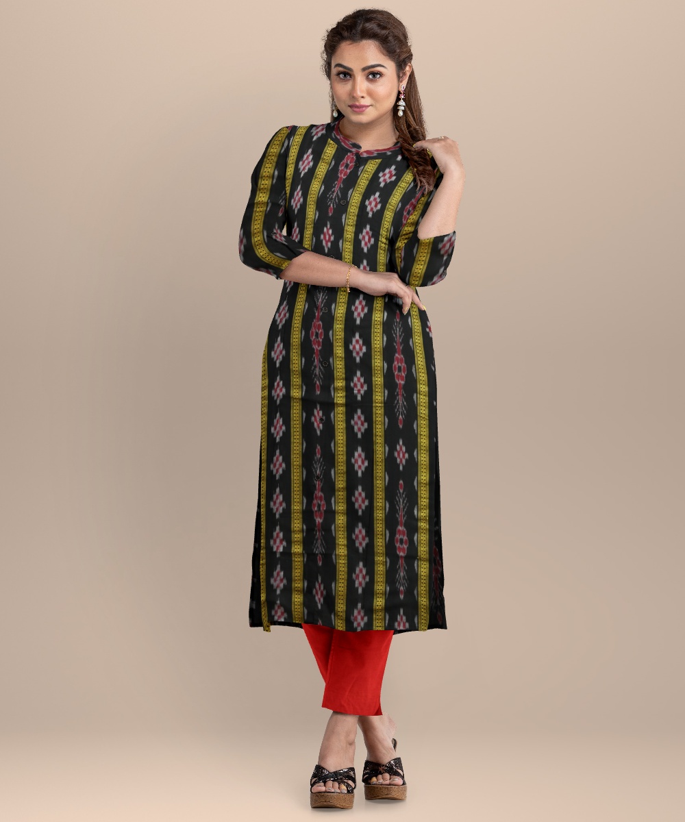 Be the first to review “Black dark red handloom cotton nuapatna dress material”