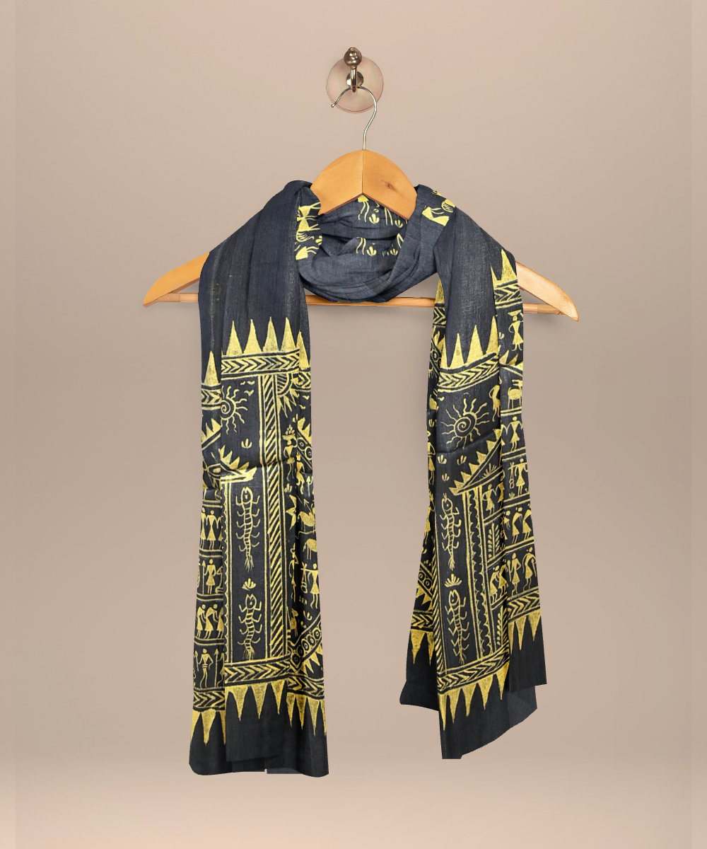 Black golden tussar silk handloom sambalpuri dupatta