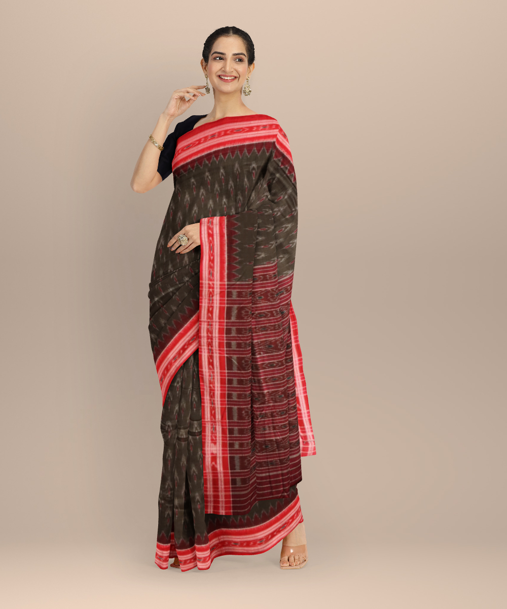 Be the first to review “Brown dark red cotton handloom nuapatna saree”