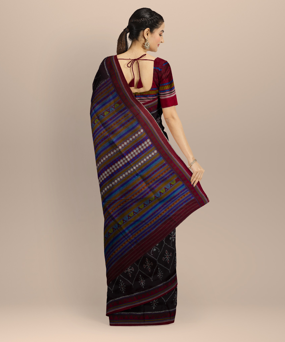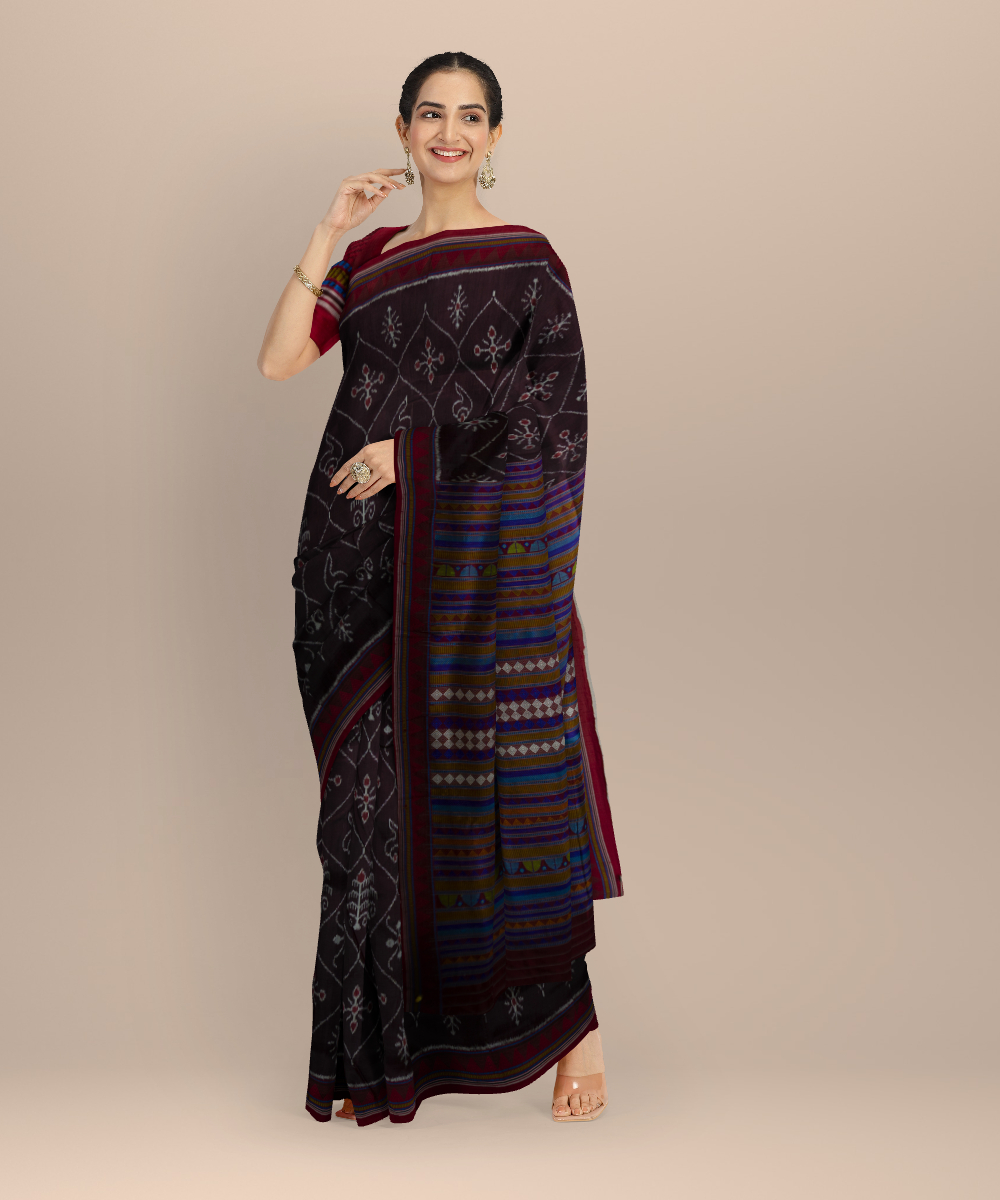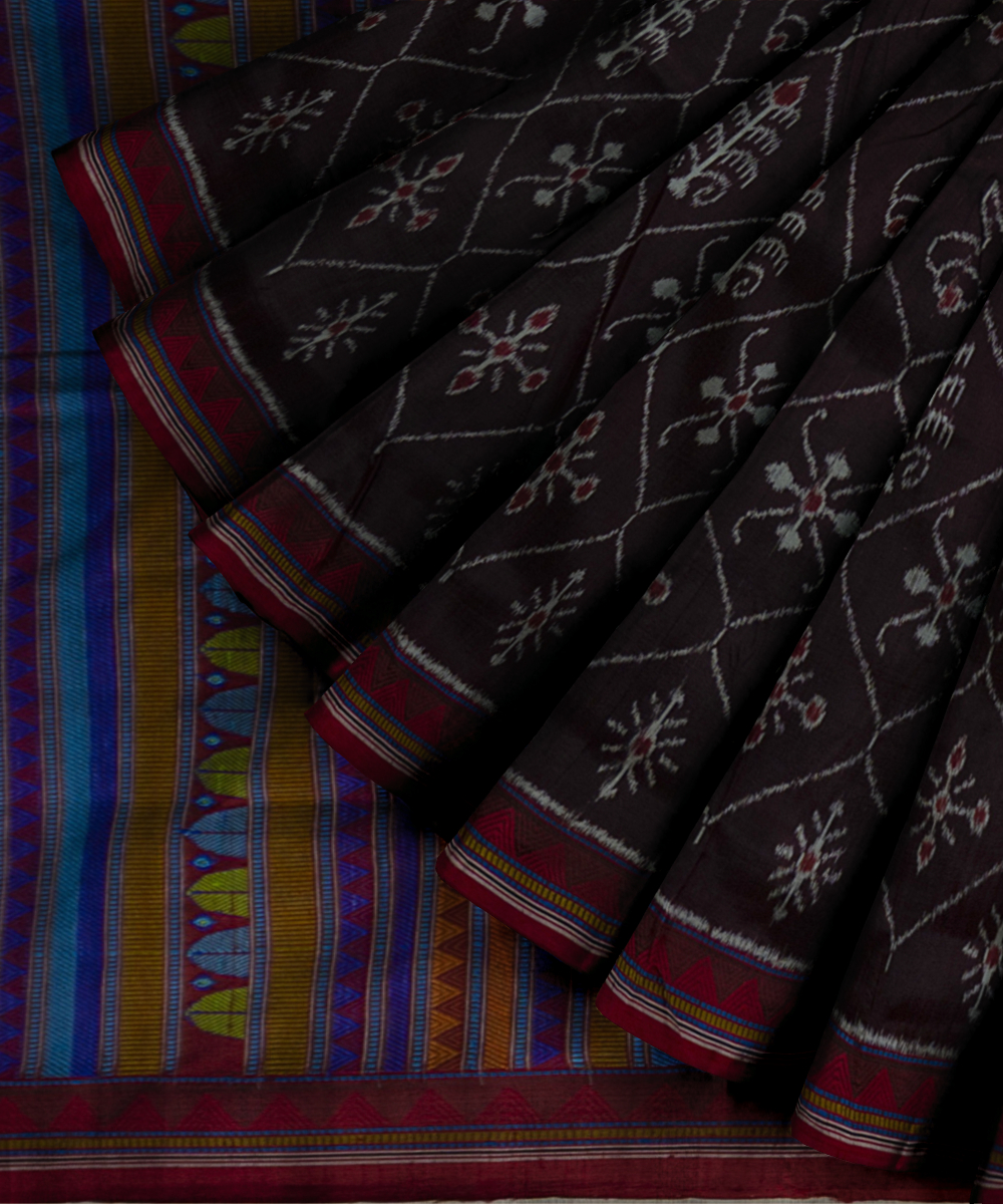 Brown dark red silk handloom khandua saree