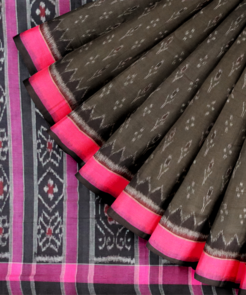 Cadet grey barbie pink cotton handloom nuapatna saree