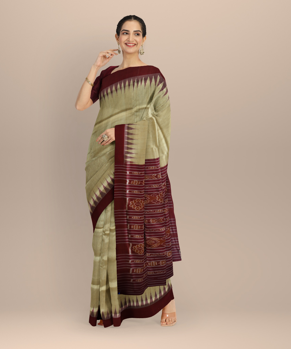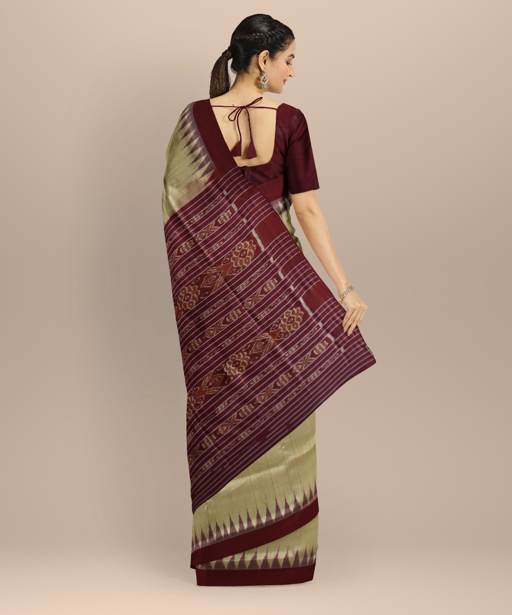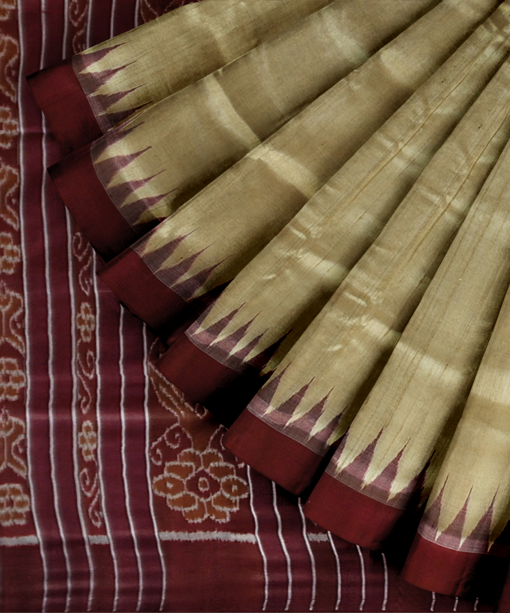 Be the first to review “Cream maroon silk handloom sambalpuri saree”