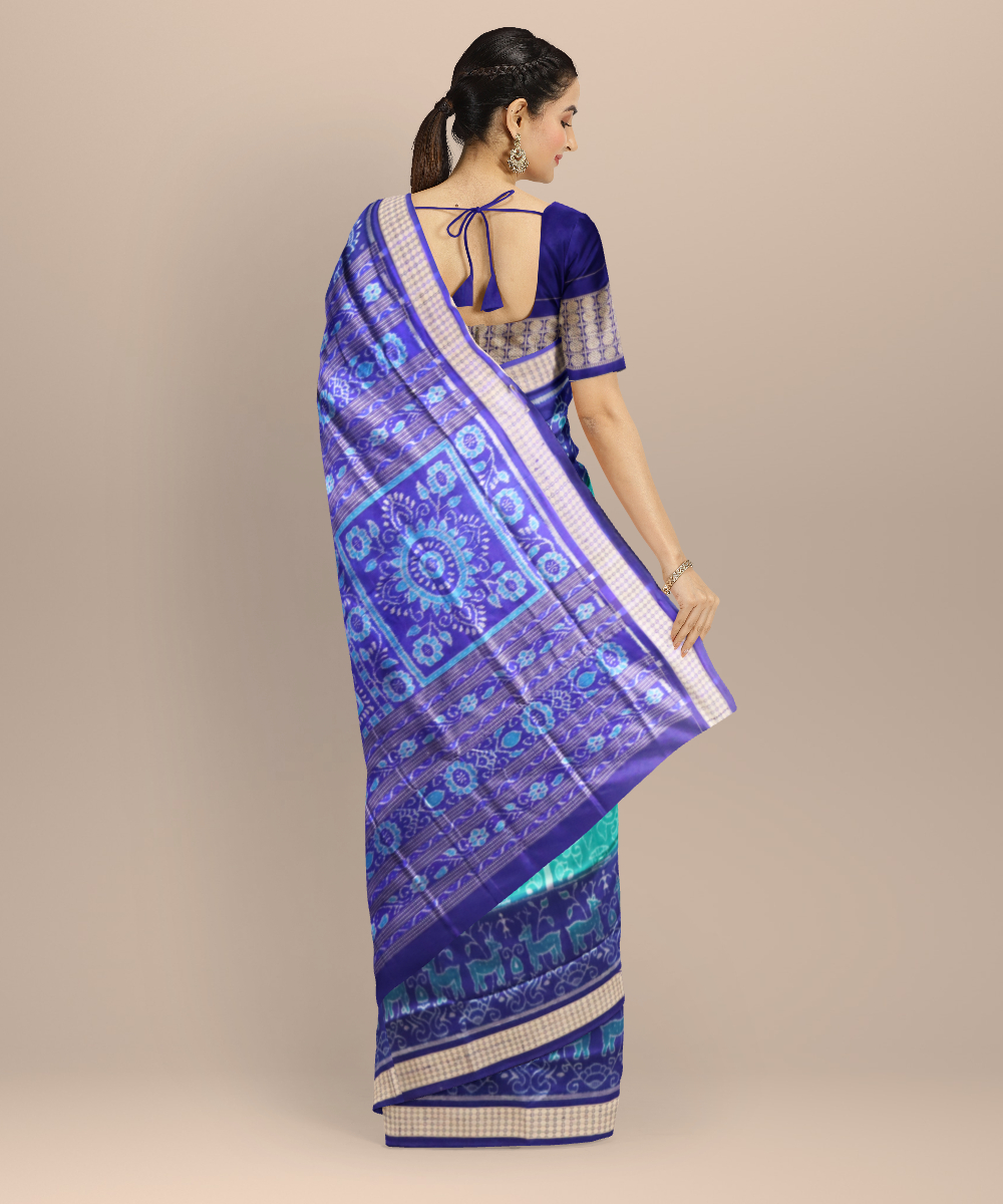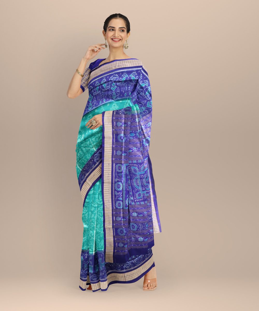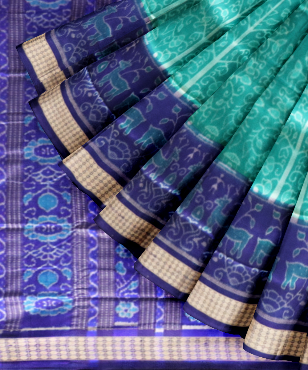 Cyan green dark blue silk handloom sambalpuri saree