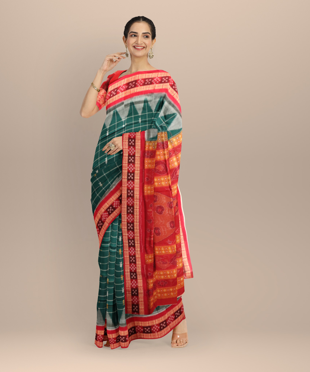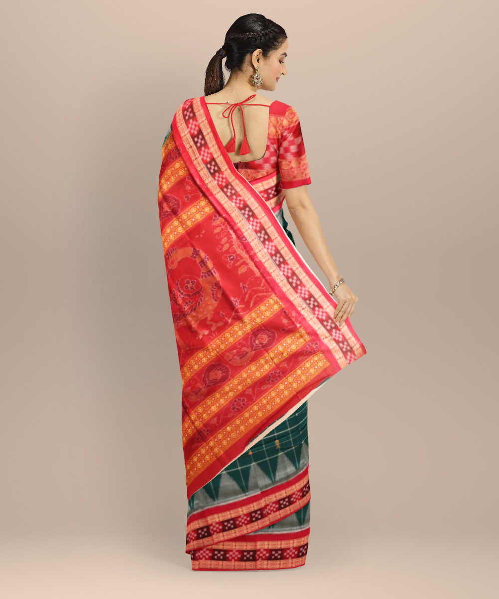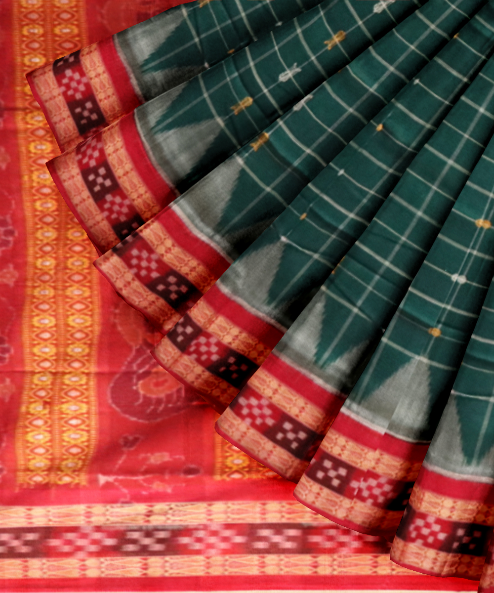 Be the first to review “Dark green dark red handloom cotton bomkai saree”