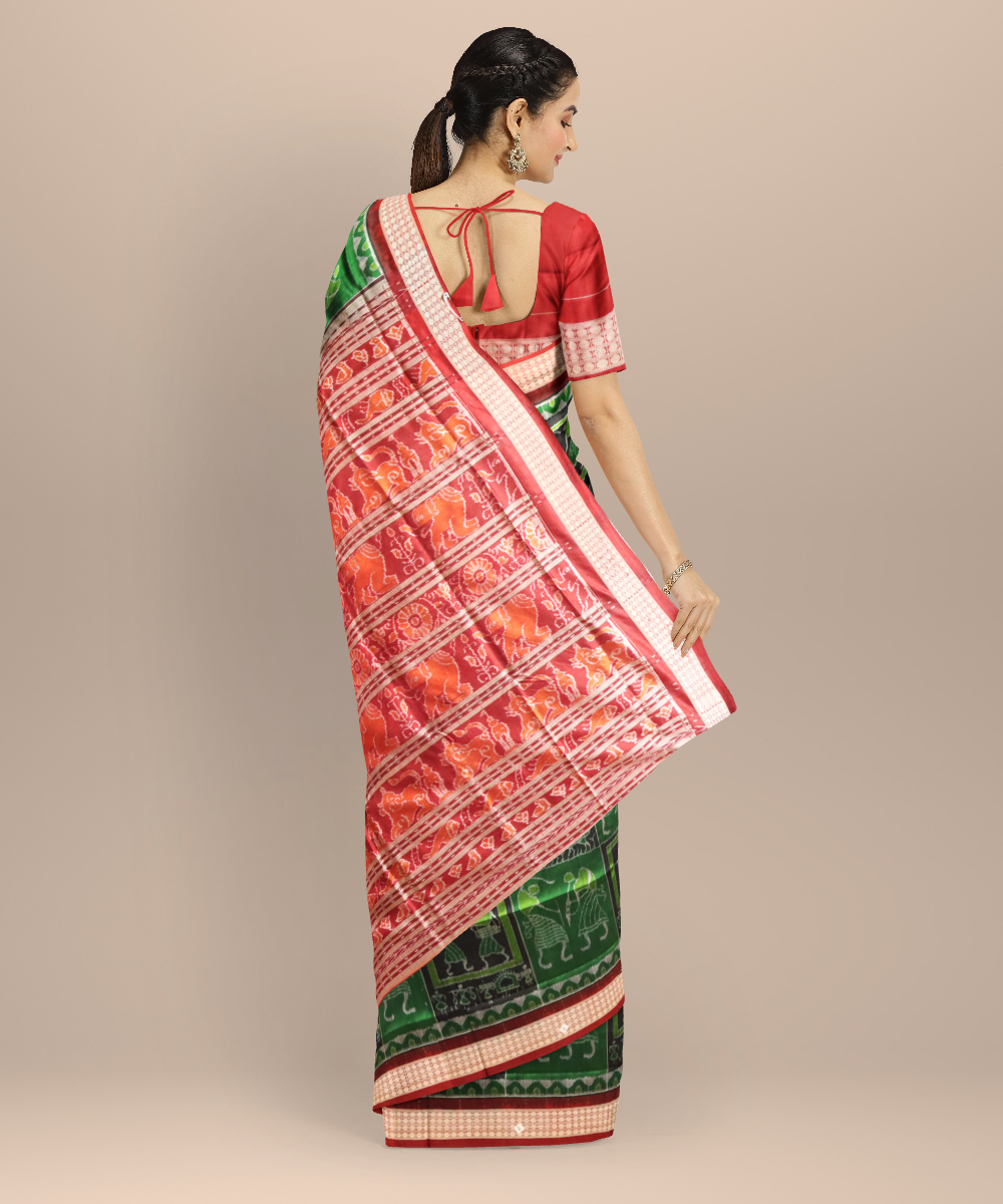 Be the first to review “Dark green maroon silk handloom sambalpuri saree”