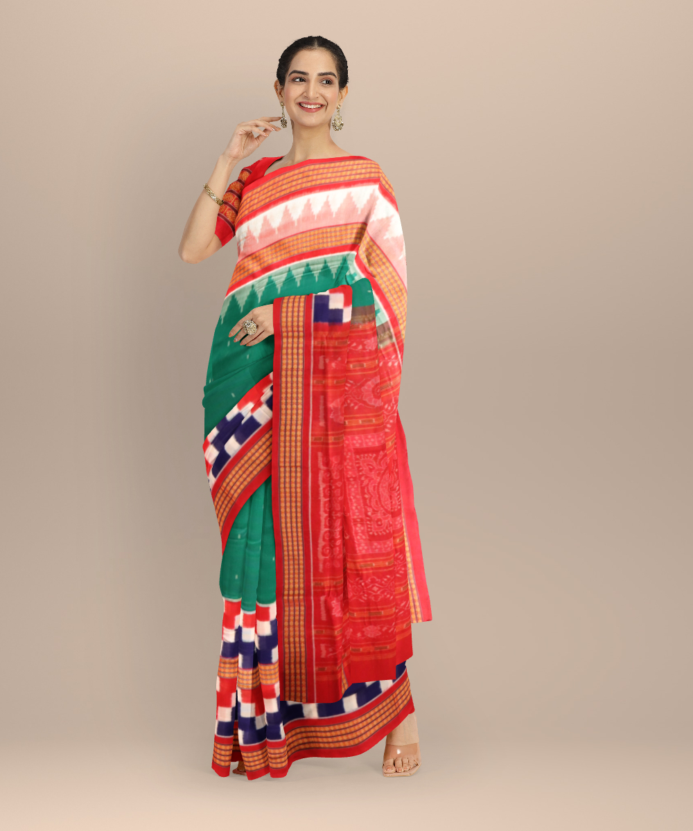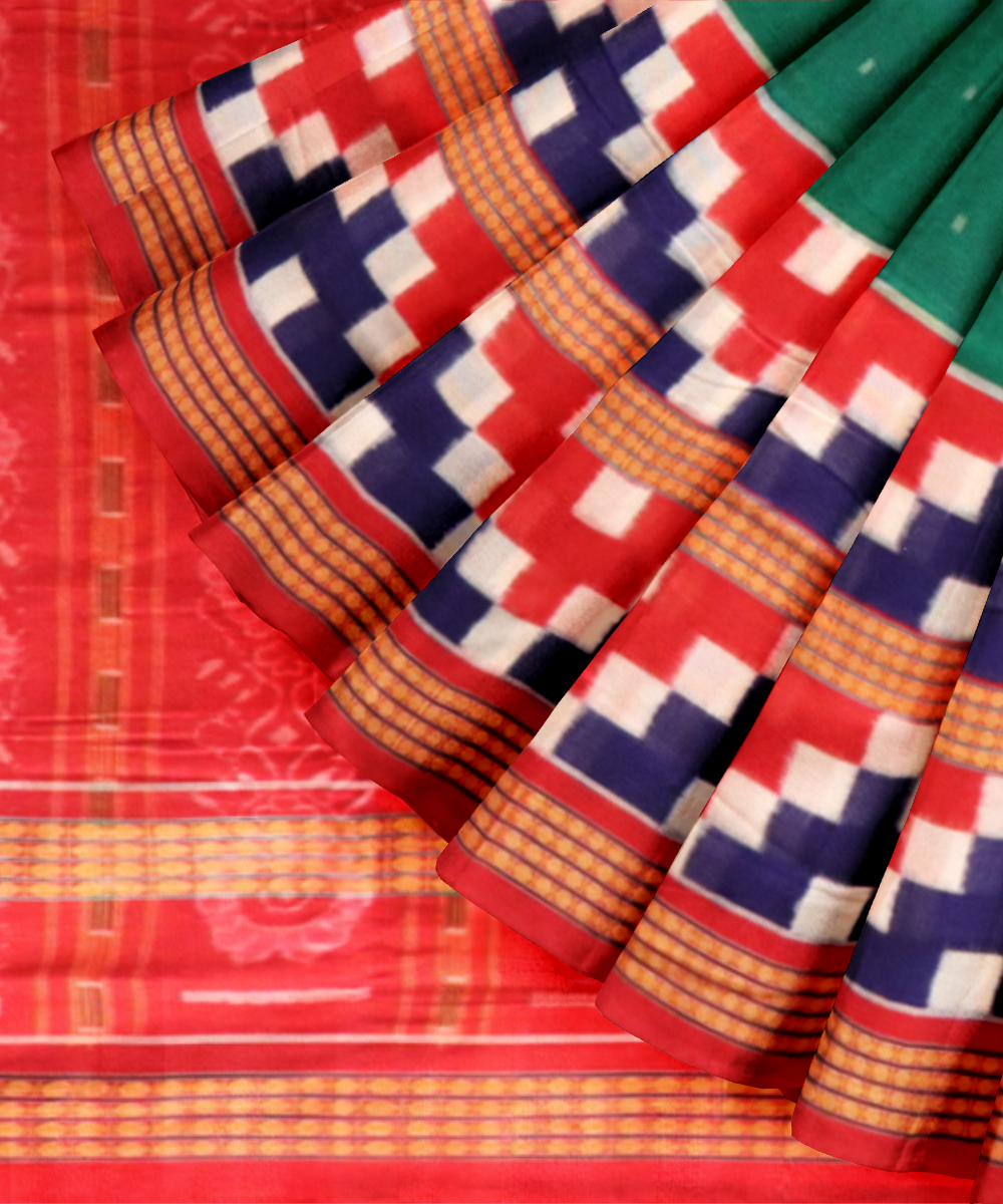 Dark green multi colour cotton handloom sambalpuri saree