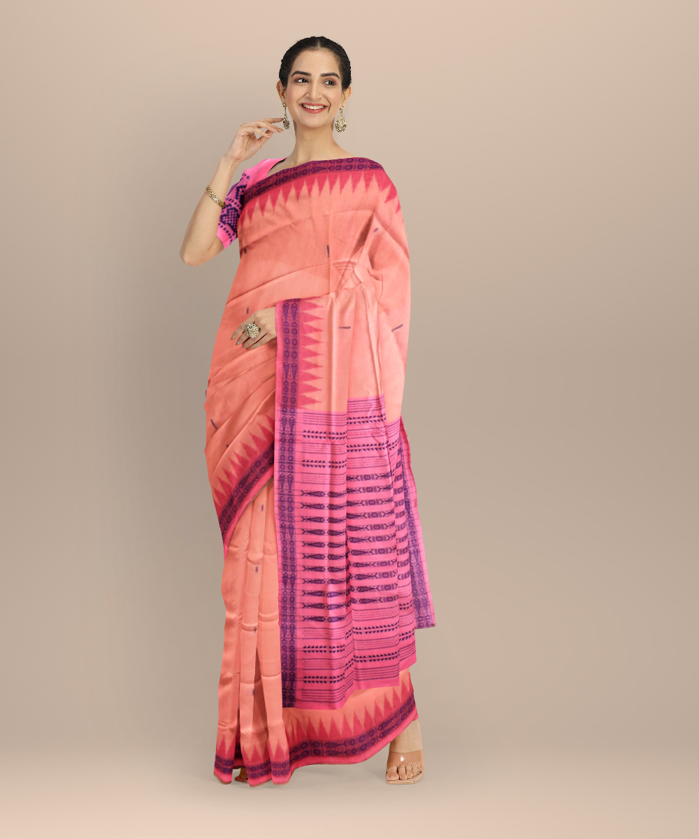 Dark pink cotton handloom sonepur saree