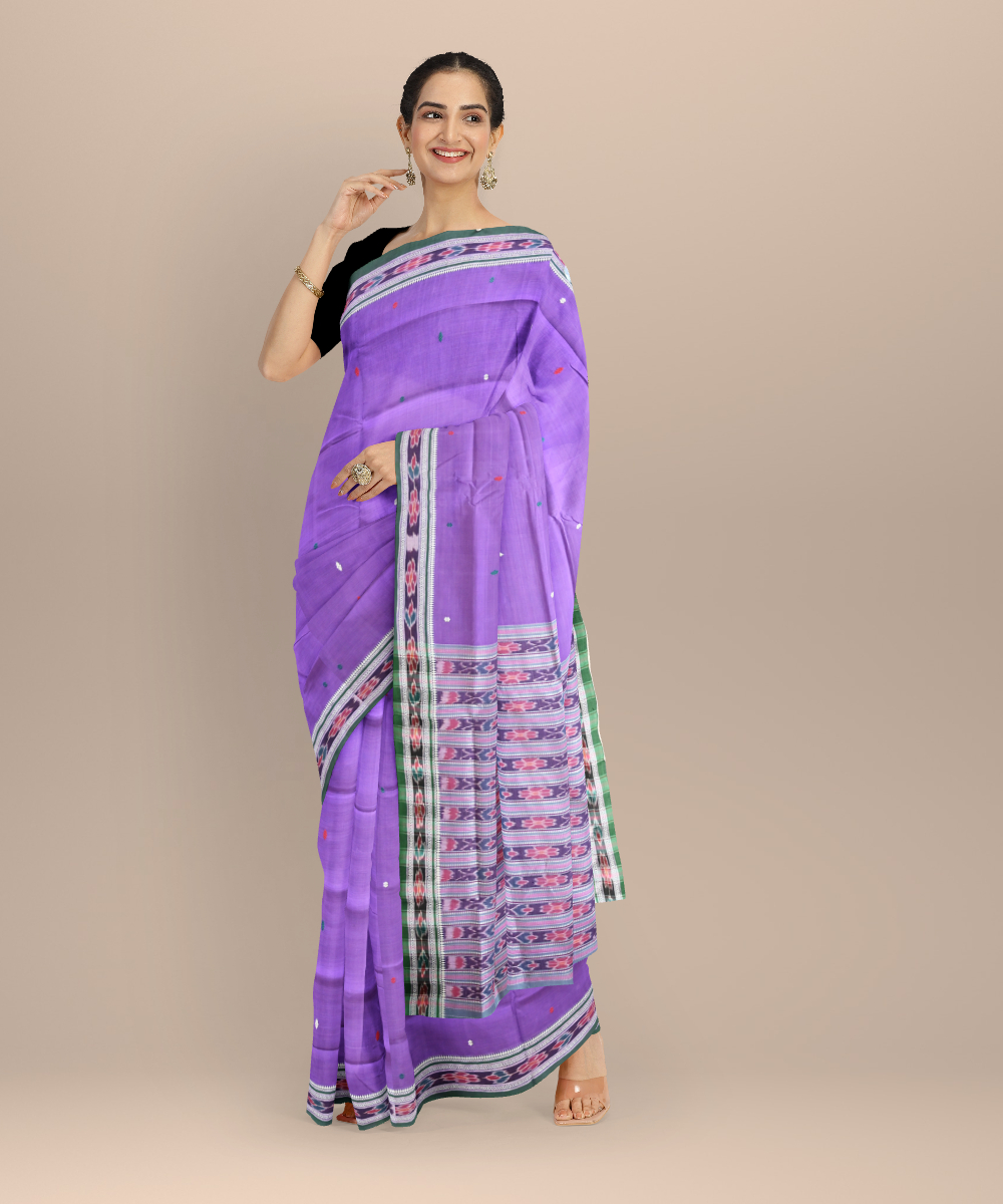 Lavender field drab cotton handloom odisha ikat saree