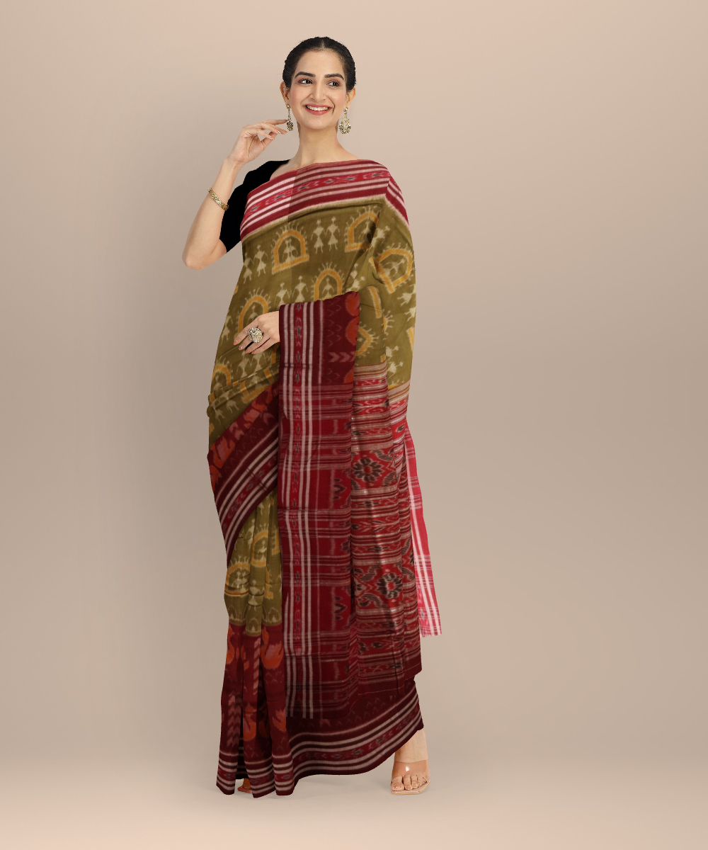 Be the first to review “Light green maroon cotton handloom nuapatna saree”