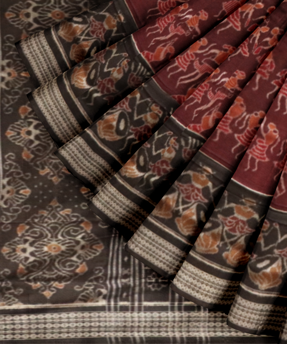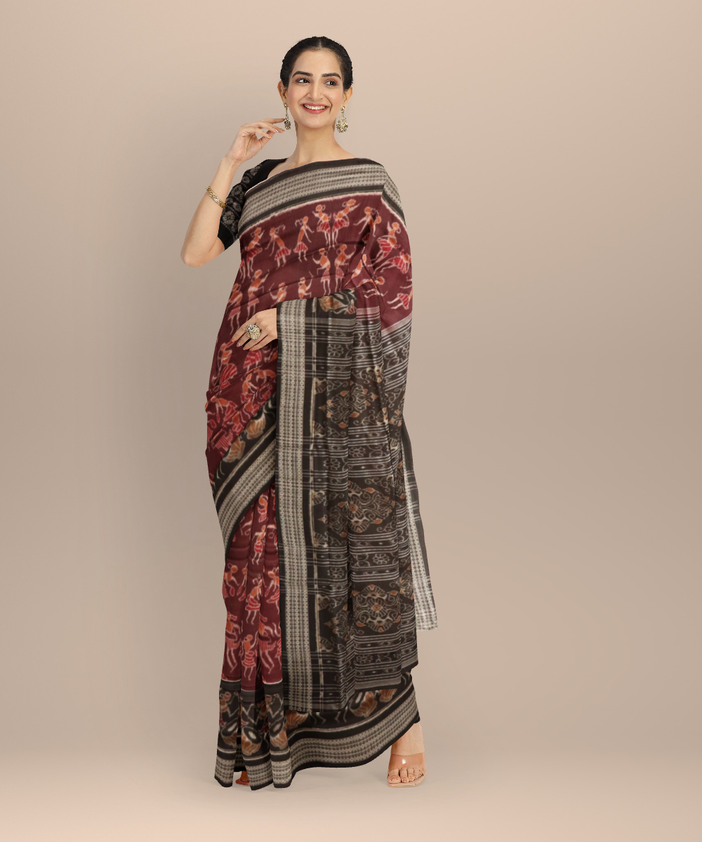 Be the first to review “Maroon black handloom cotton sambalpuri saree”