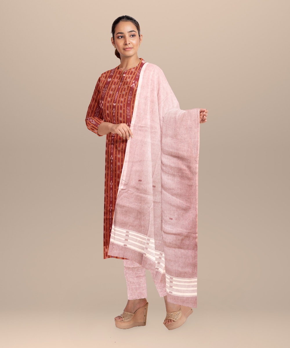 Maroon cameo pink handloom cotton nuapatna dress material