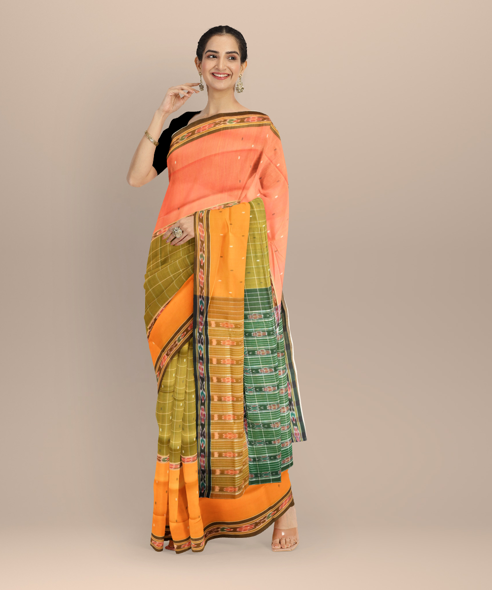 Multicolor beaver cotton handloom odisha ikat saree