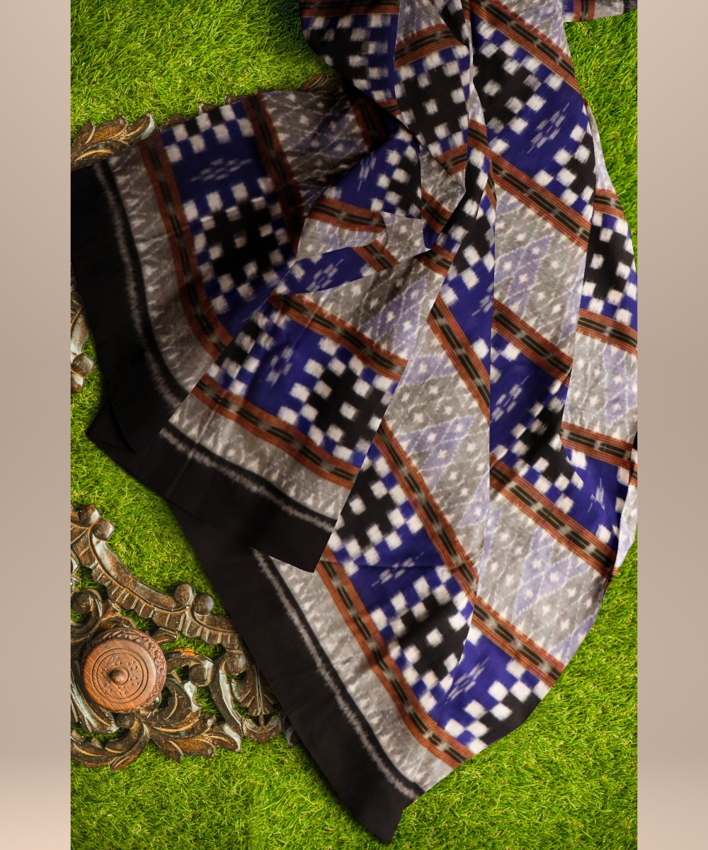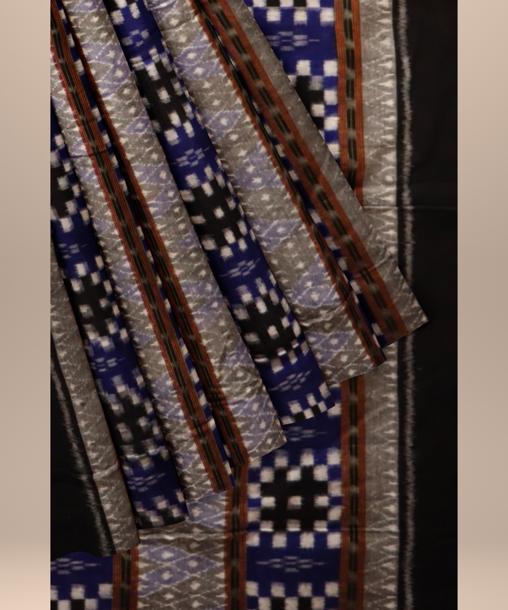 Multicolor black cotton hand loom sambalpuri fabric