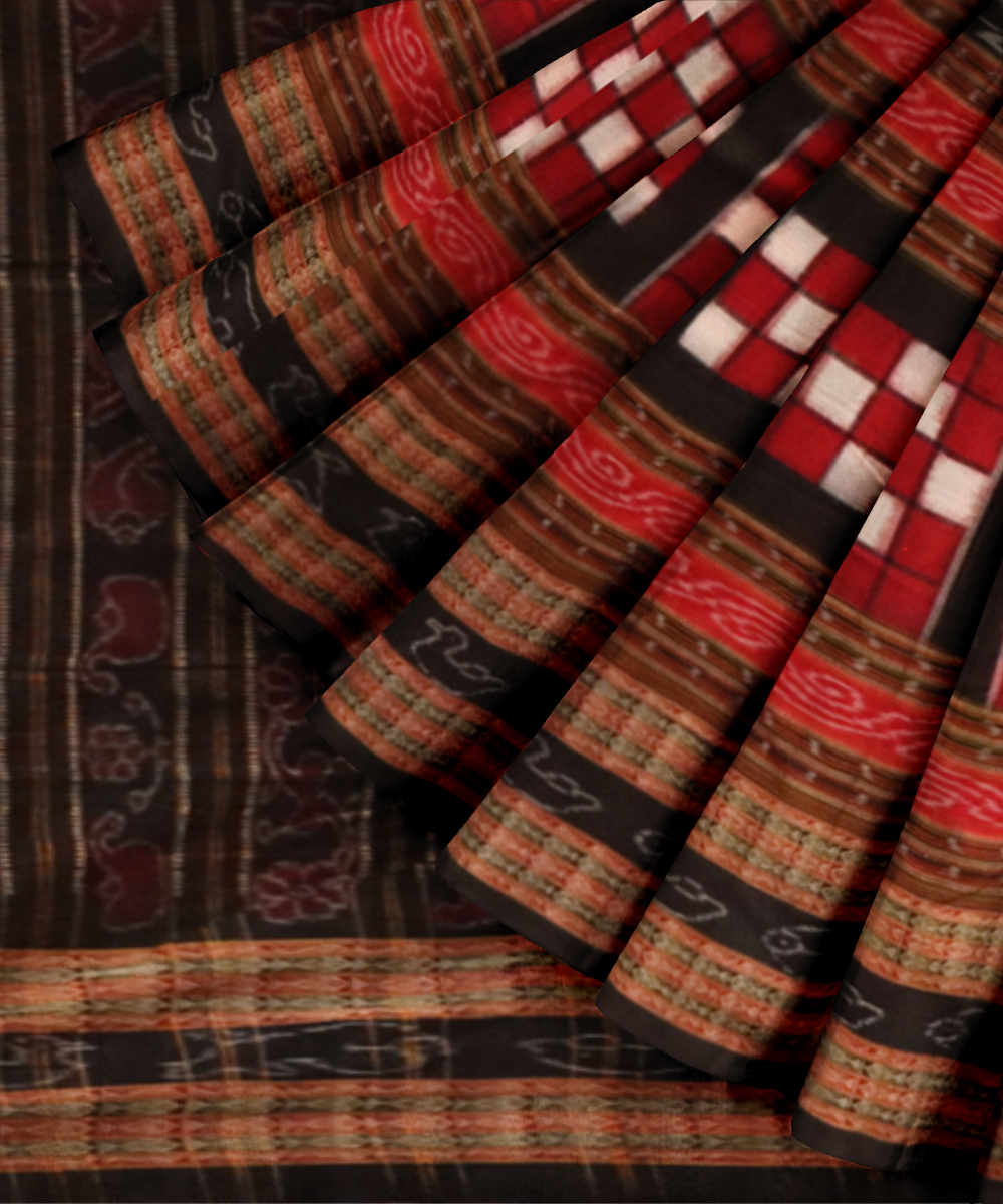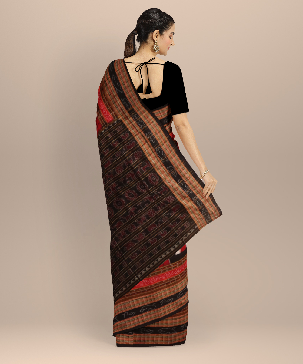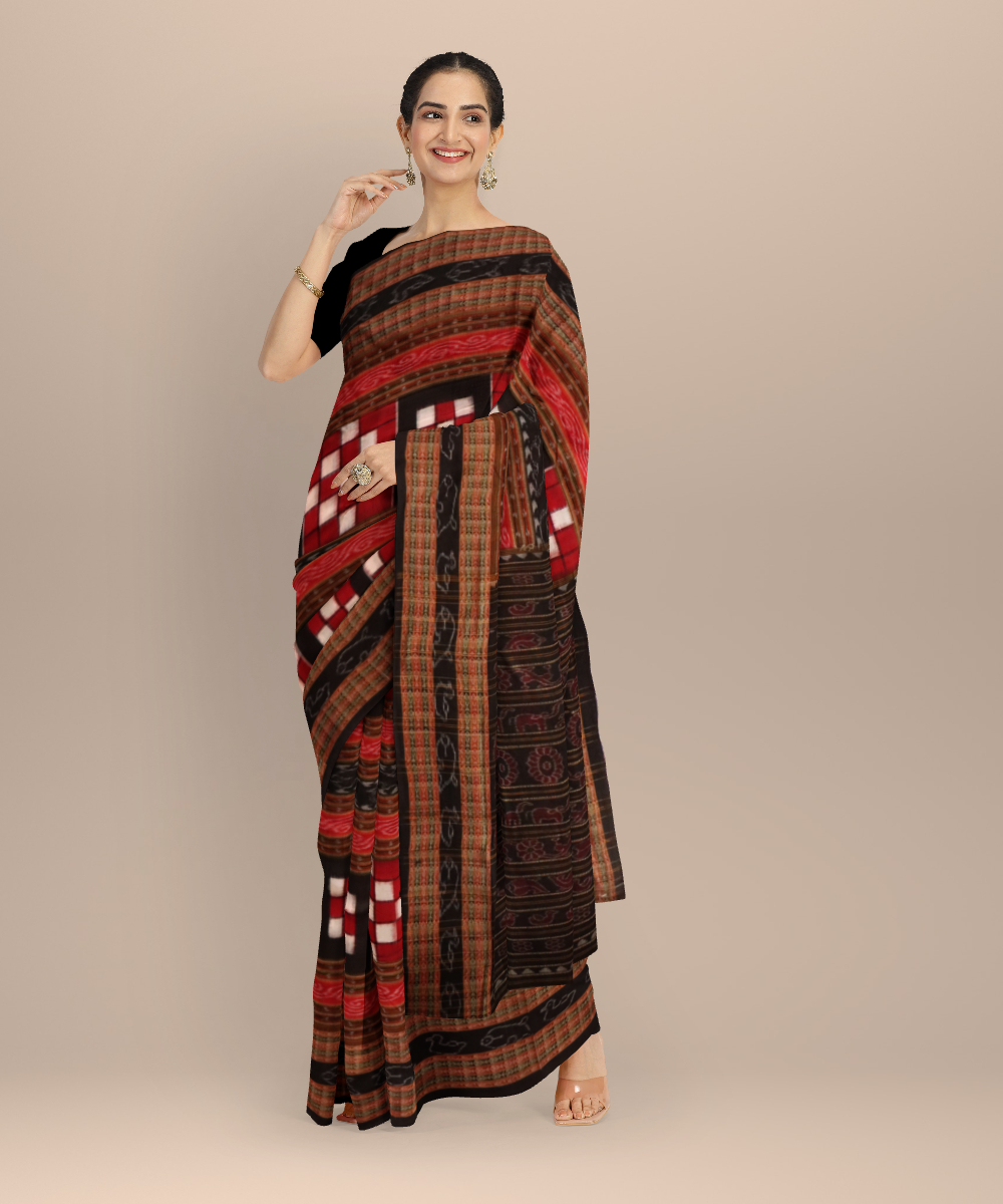 Multicolor black cotton handloom sambalpuri saree