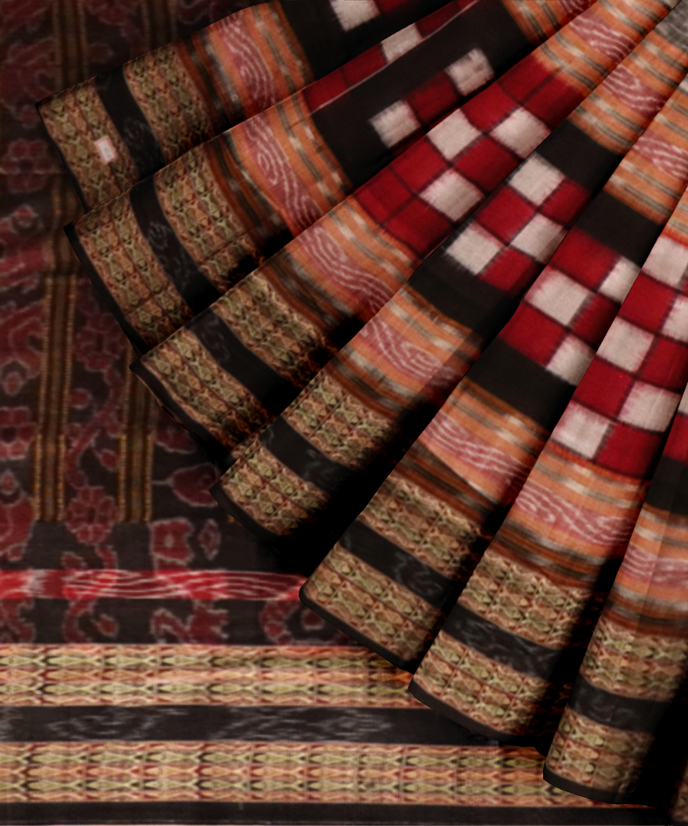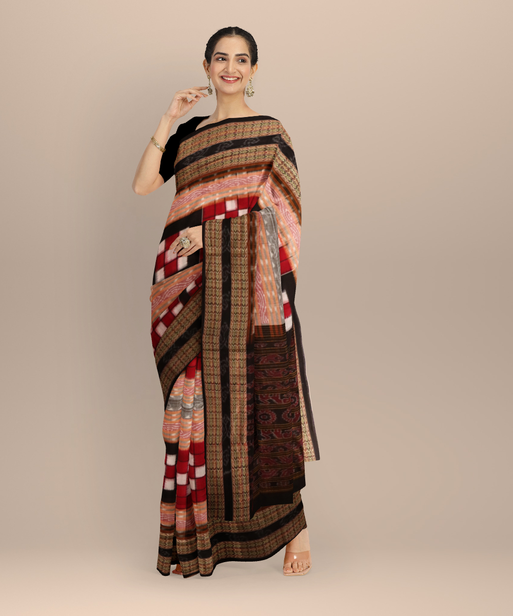 Multicolor black cotton handloom sambalpuri saree