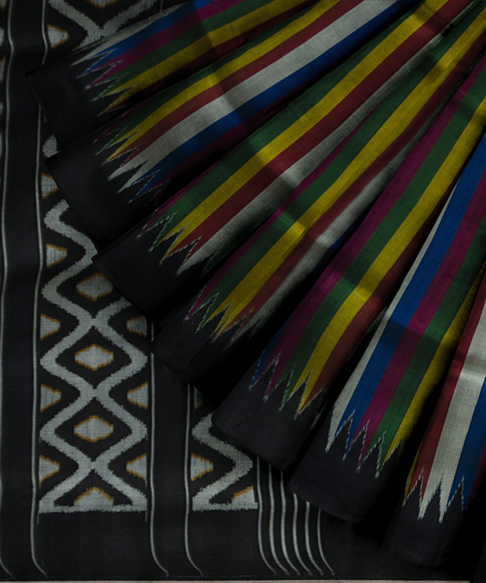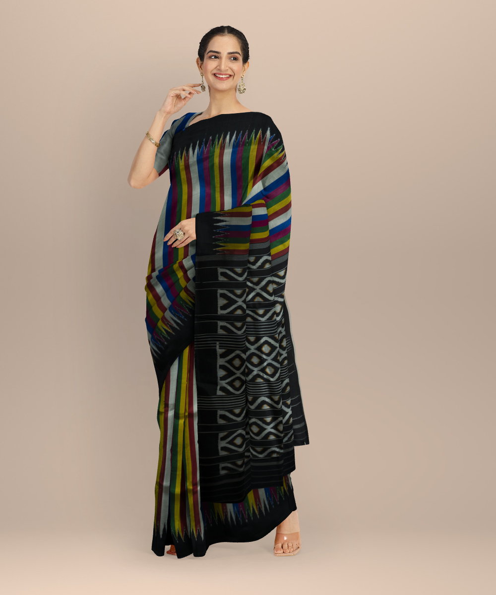 Be the first to review “Multicolor black handloom khandua silk saree”