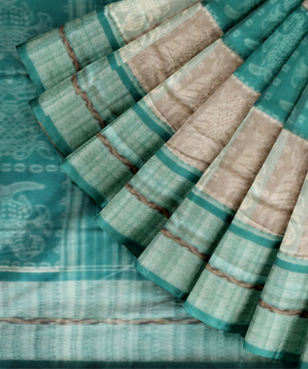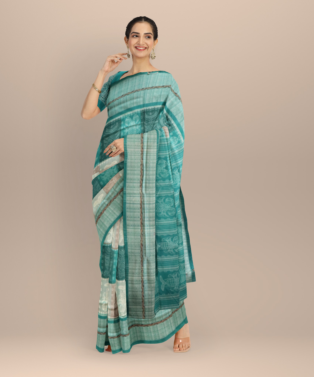 Multicolor cadet blue cotton handloom sambalpuri saree