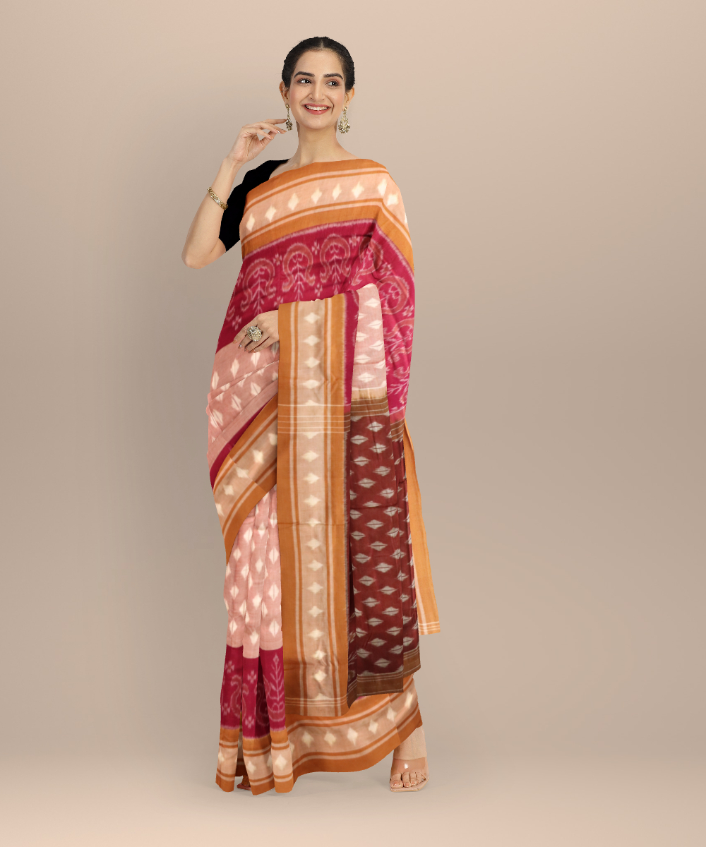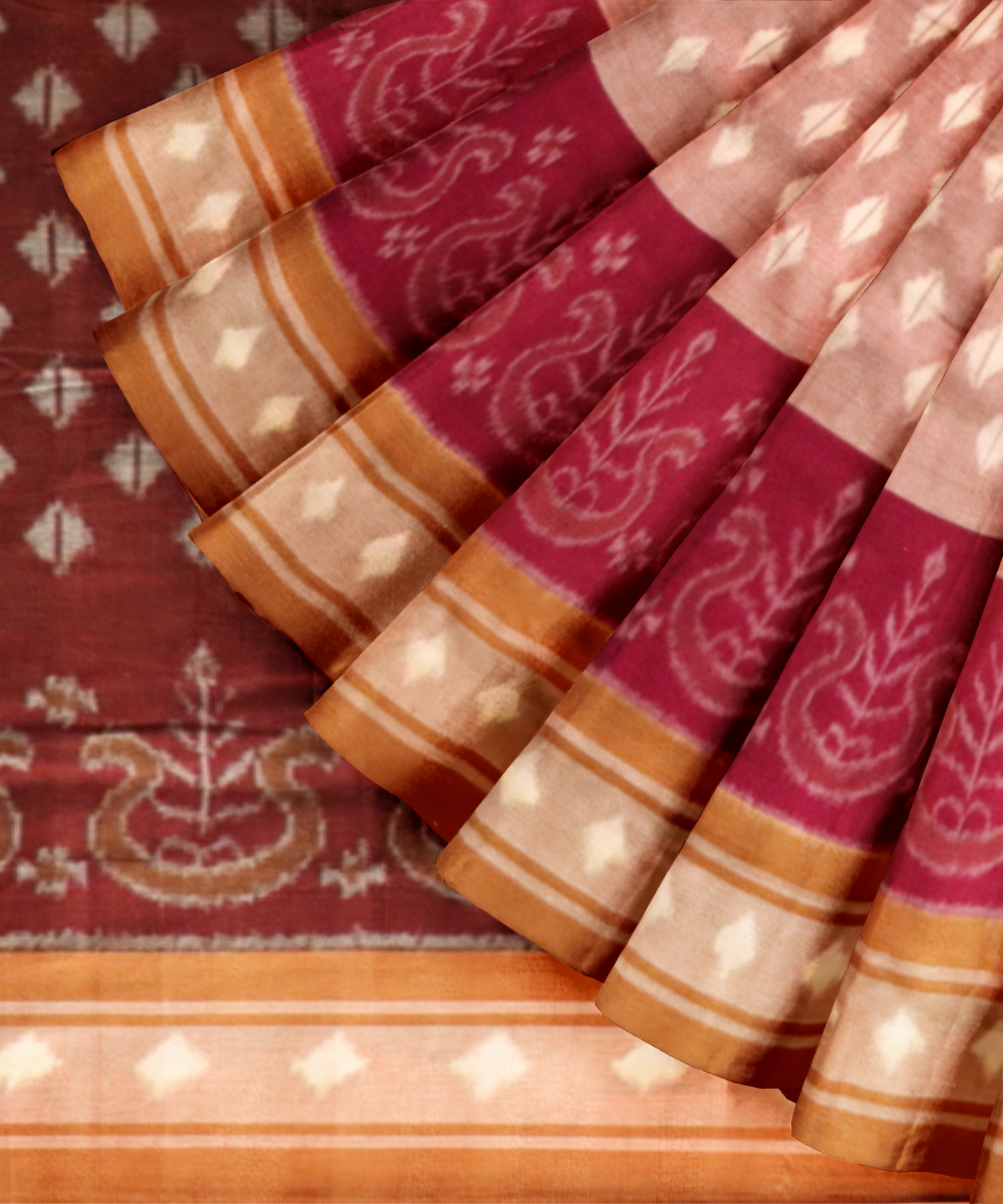 Multicolor camel cotton handloom nuapatna saree