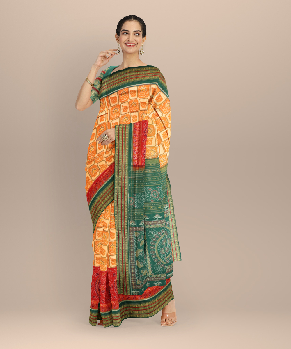 Multicolor dark green cotton handloom sambalpuri saree