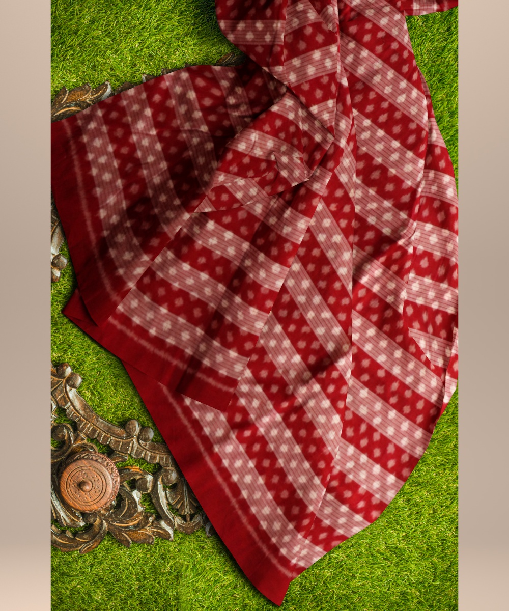 Multicolor dark red cotton handloom sambalpuri fabric