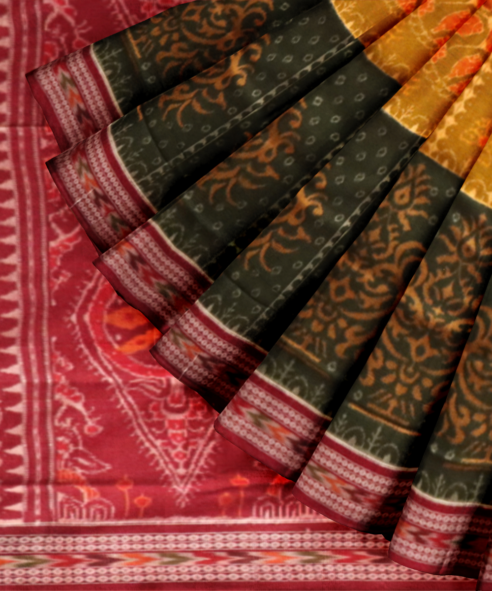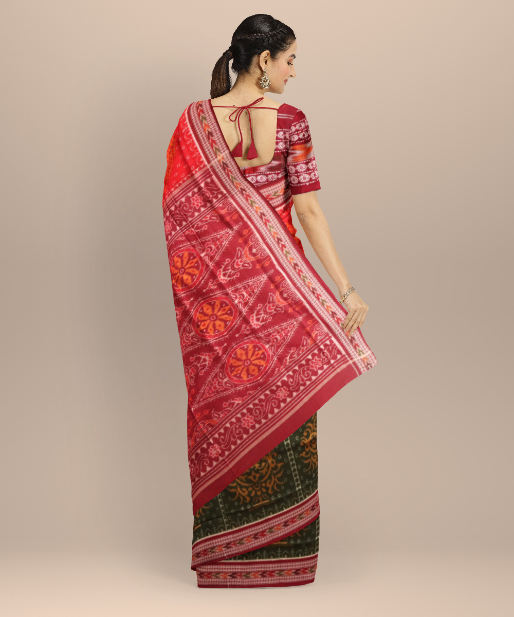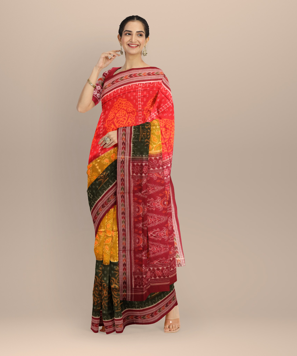 Multicolor maroon cotton handloom sambalpuri saree