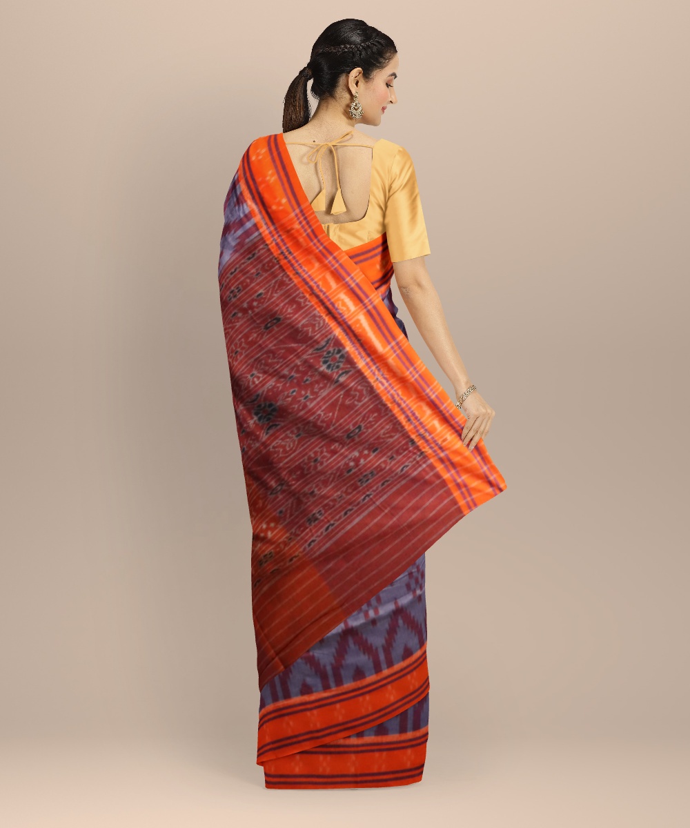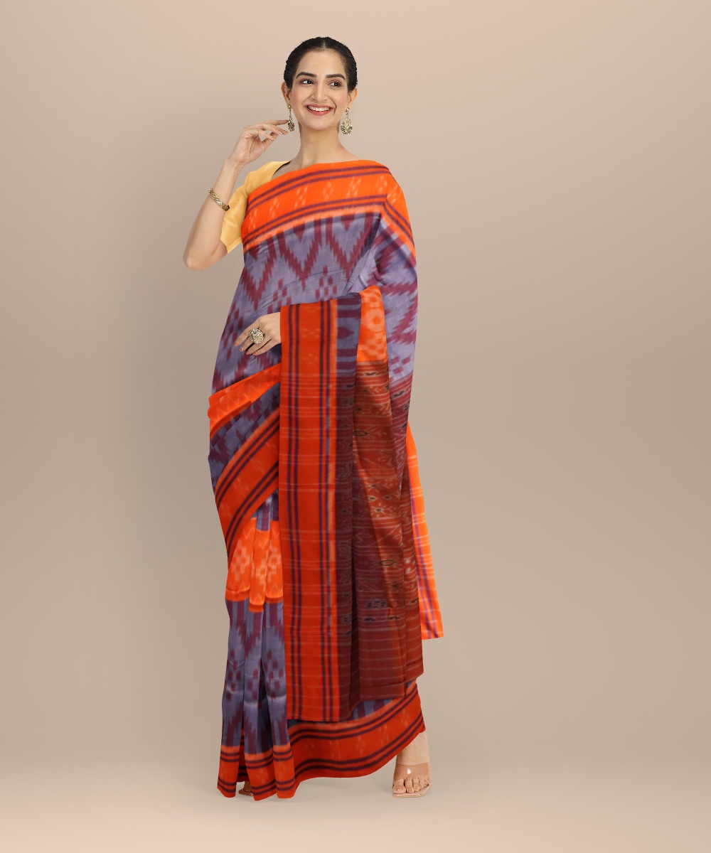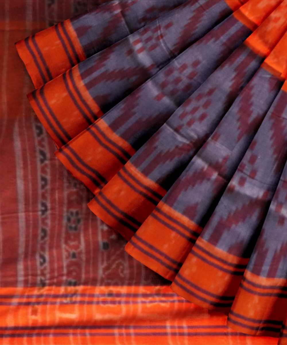 Multicolor orange cotton handloom nuapatna saree