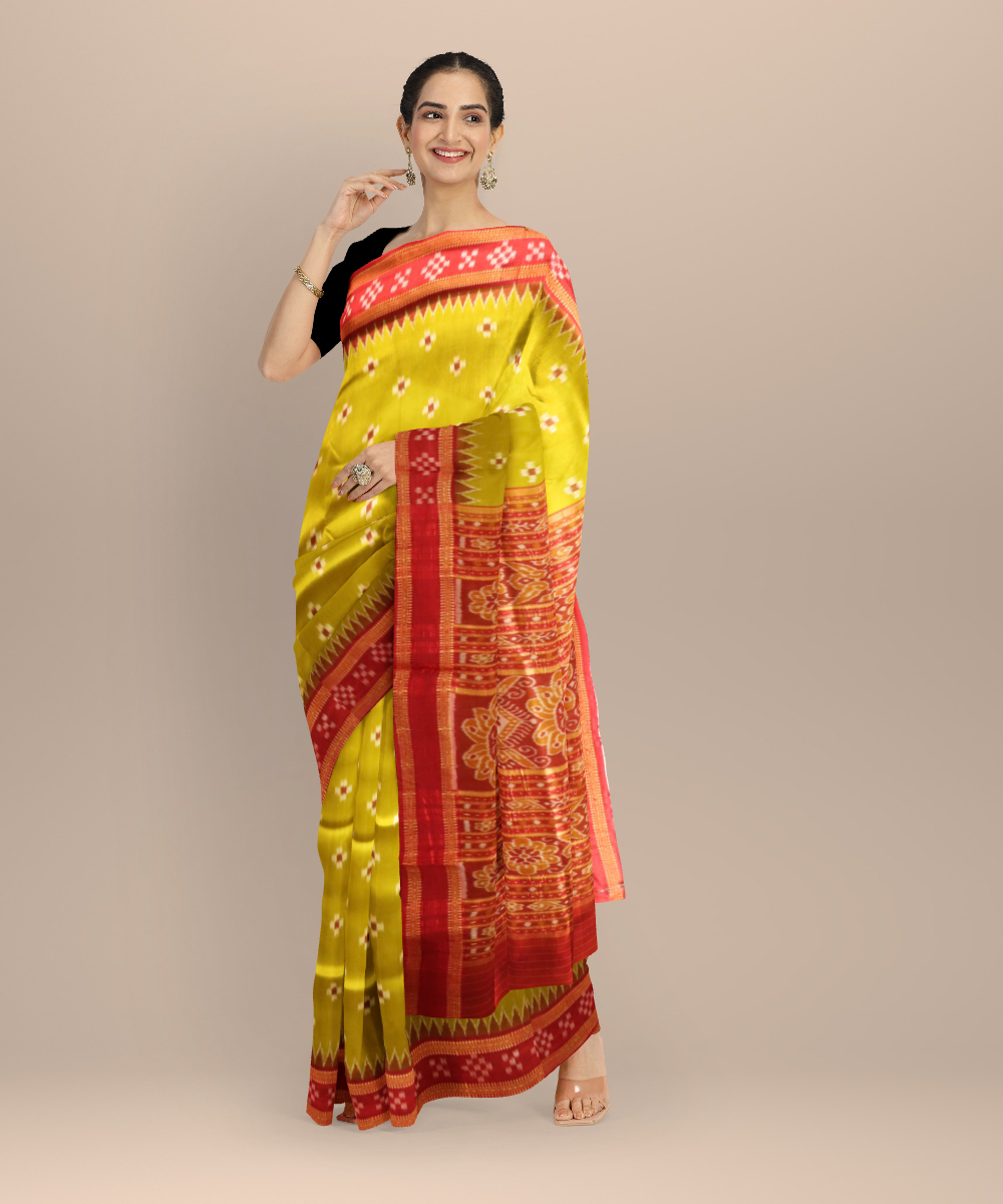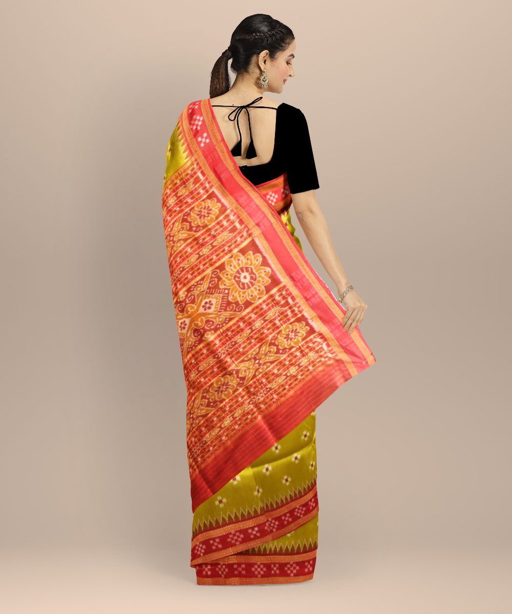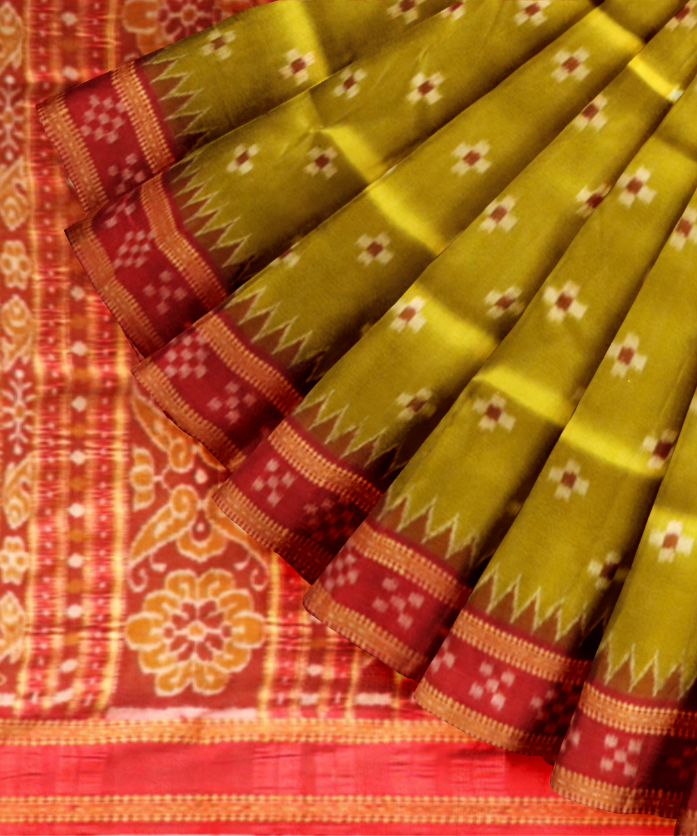 Olive green dark red silk handloom khandua saree
