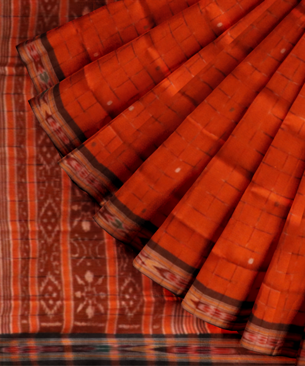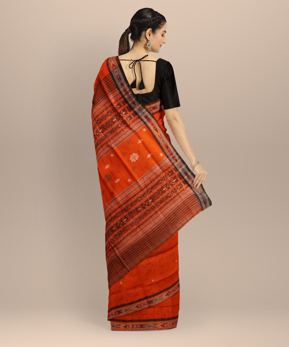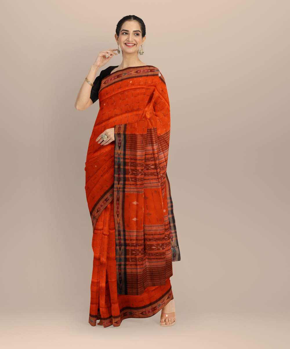 Orange coffee cotton handloom odisha ikat saree