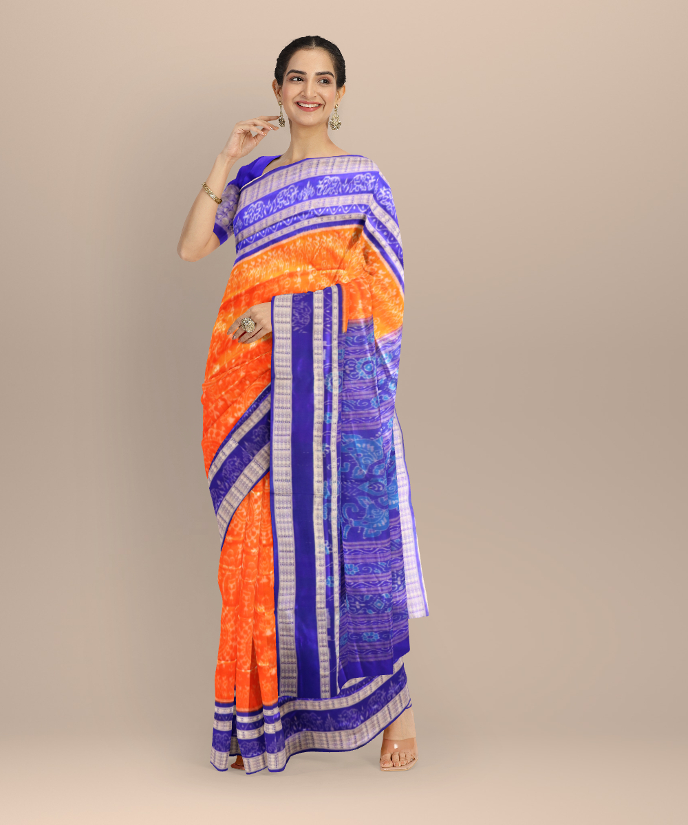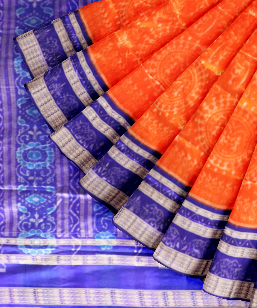 Be the first to review “Orange dark blue silk handloom sambalpuri saree”
