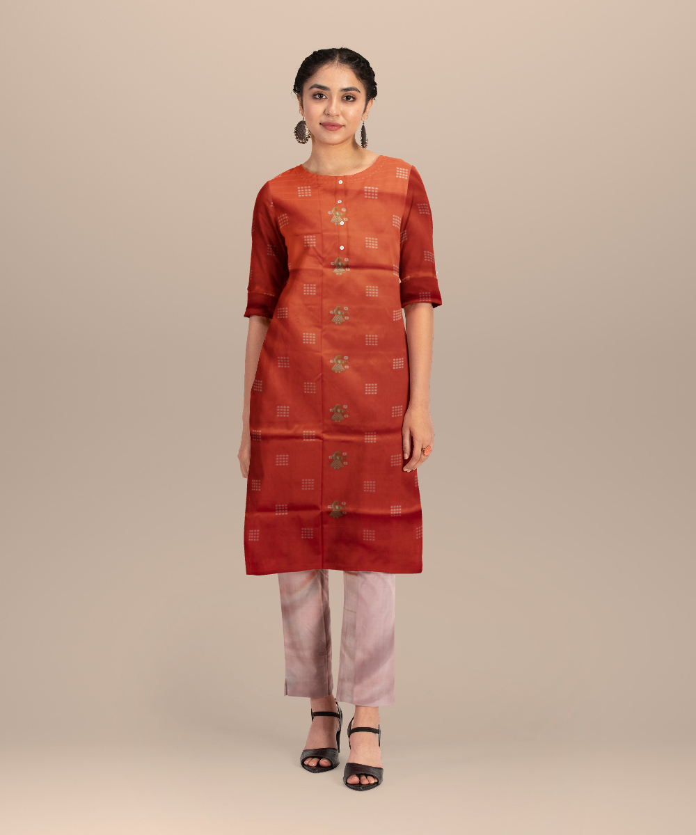 Be the first to review “Orange dust storm handloom silk bomkai dress material”