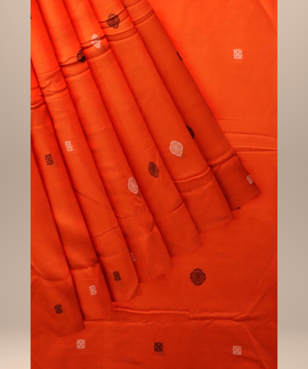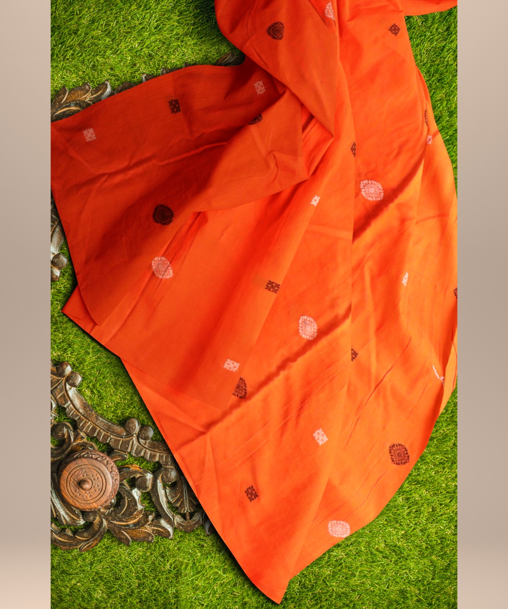 Orange white black cotton handloom sonepur fabric