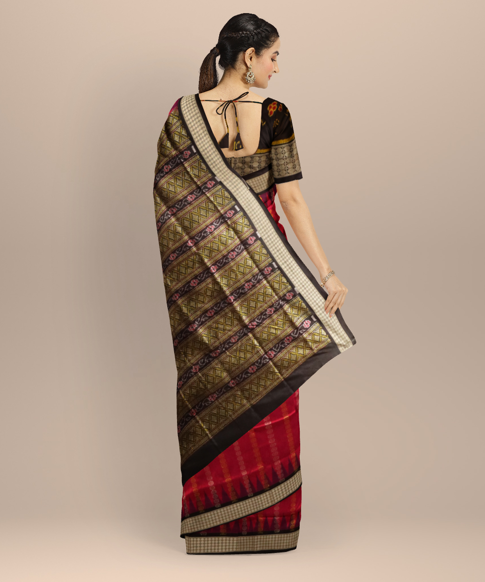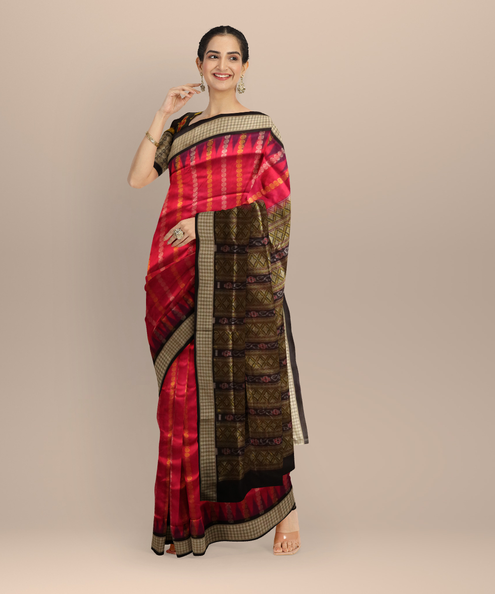 Pink black silk handloom bomkai saree