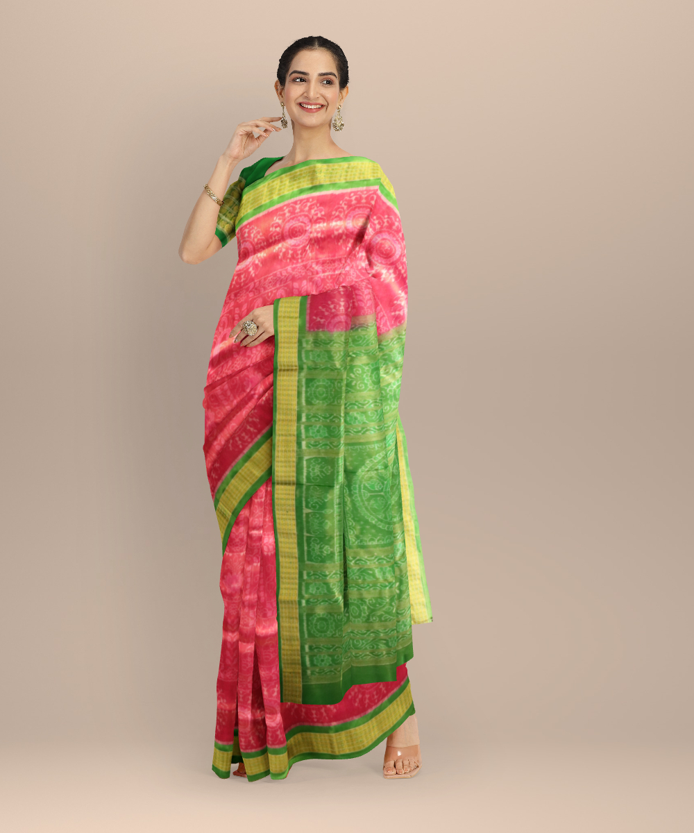 Be the first to review “Pink bright green silk handloom sambalpuri saree”