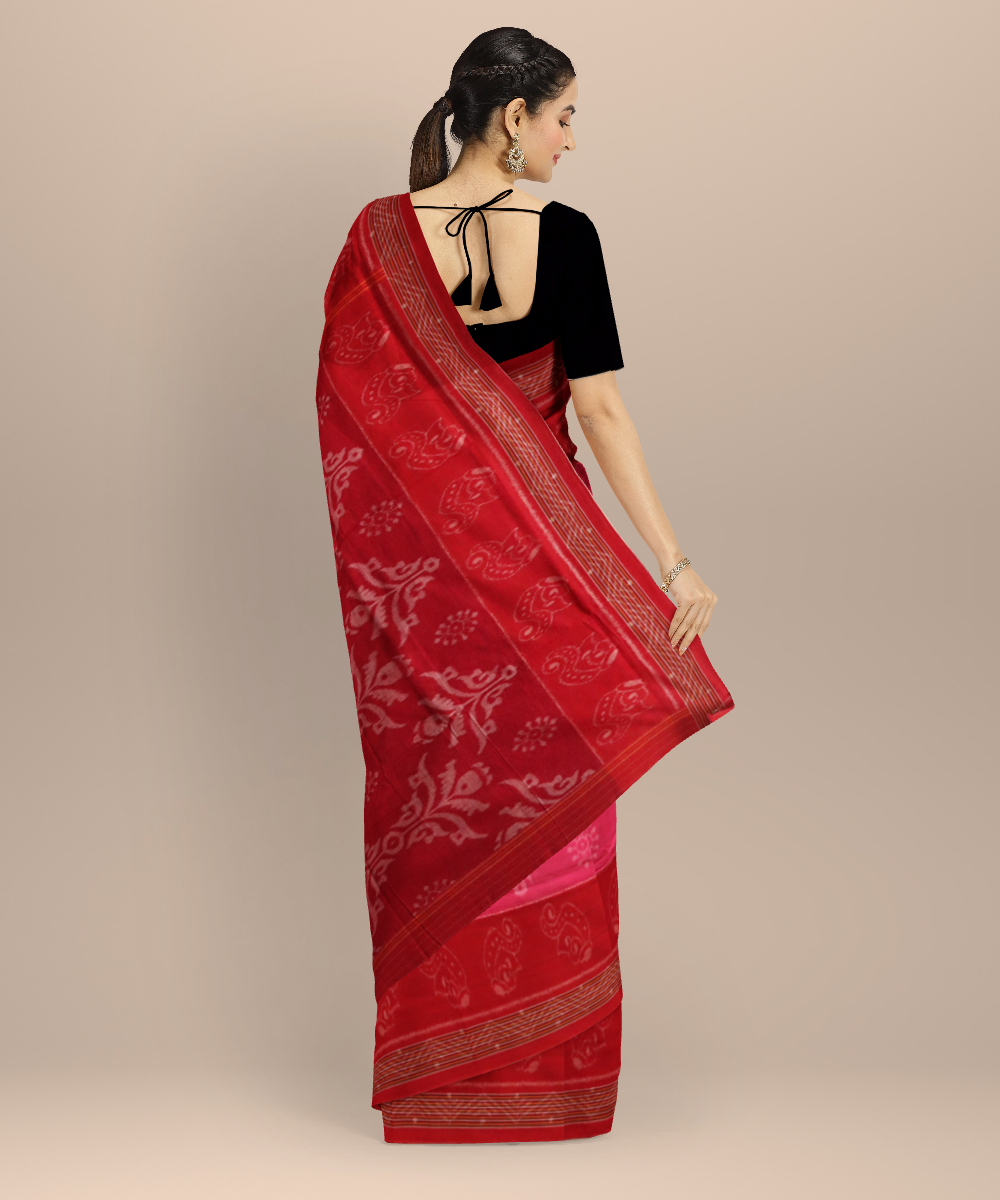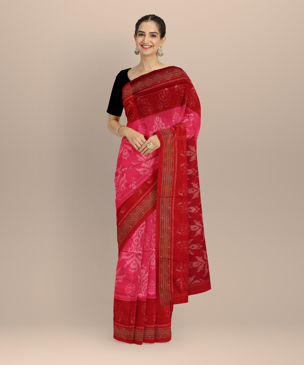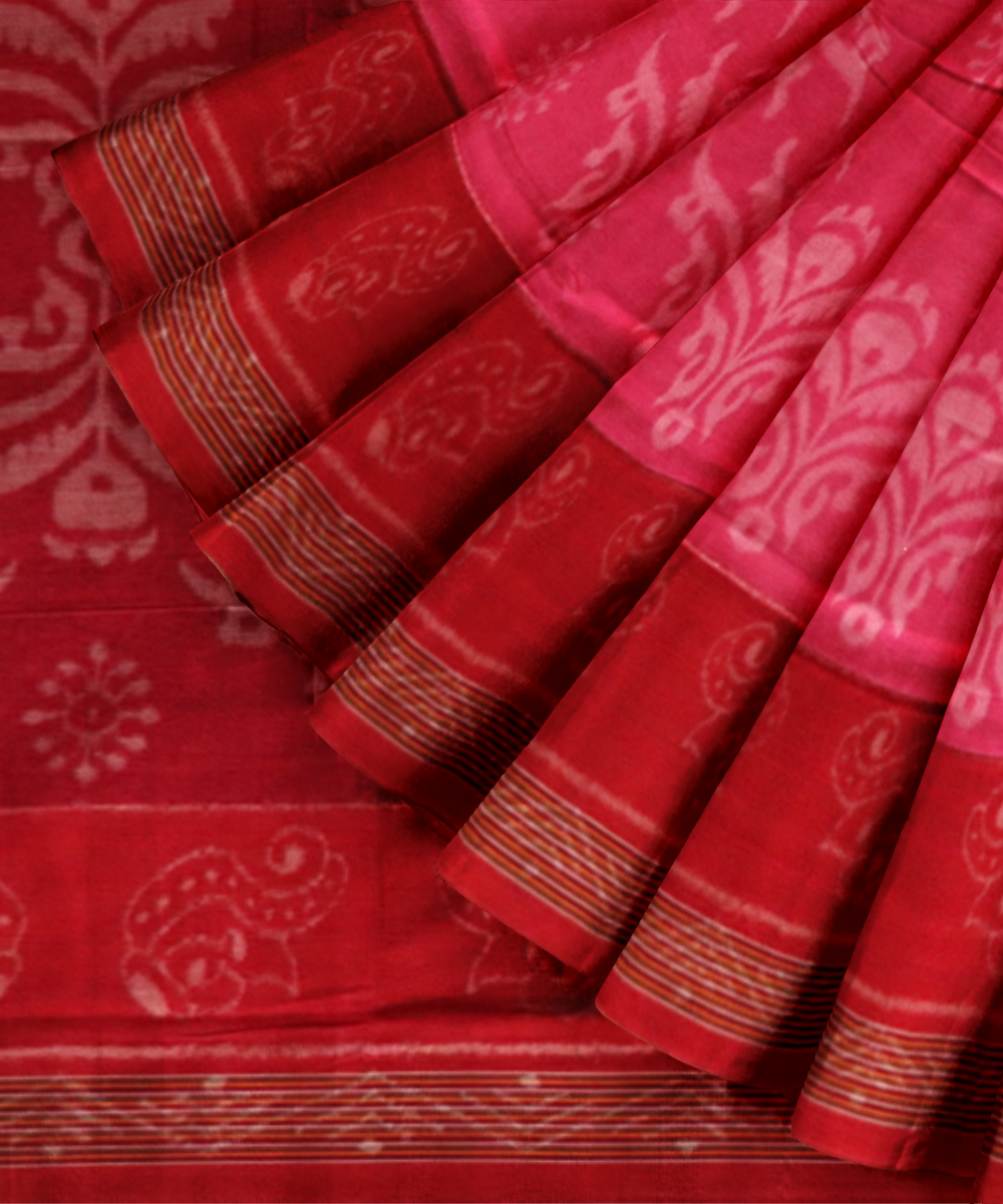 Be the first to review “Pink dark red cotton handloom nuapatna saree”
