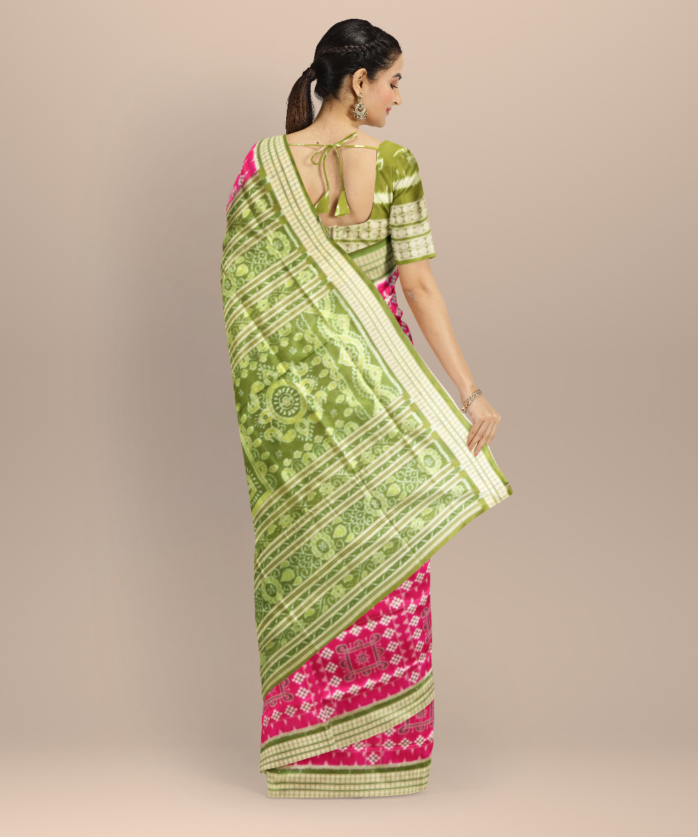 Be the first to review “Pink deep moss green silk handloom sambalpuri saree”