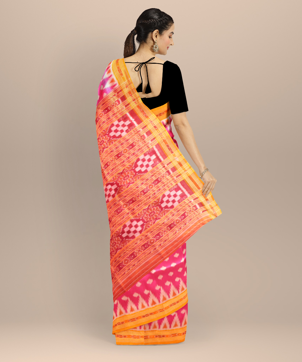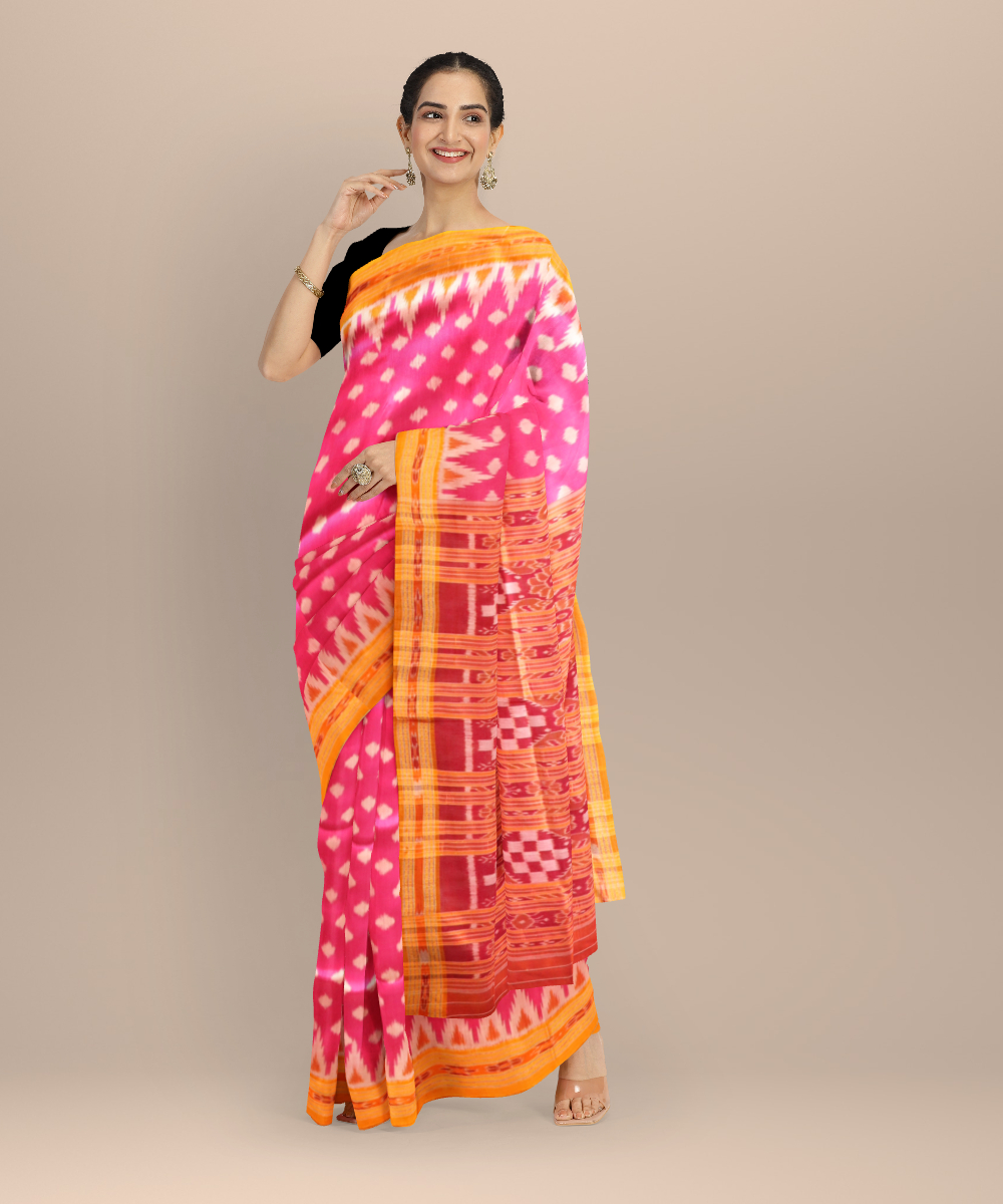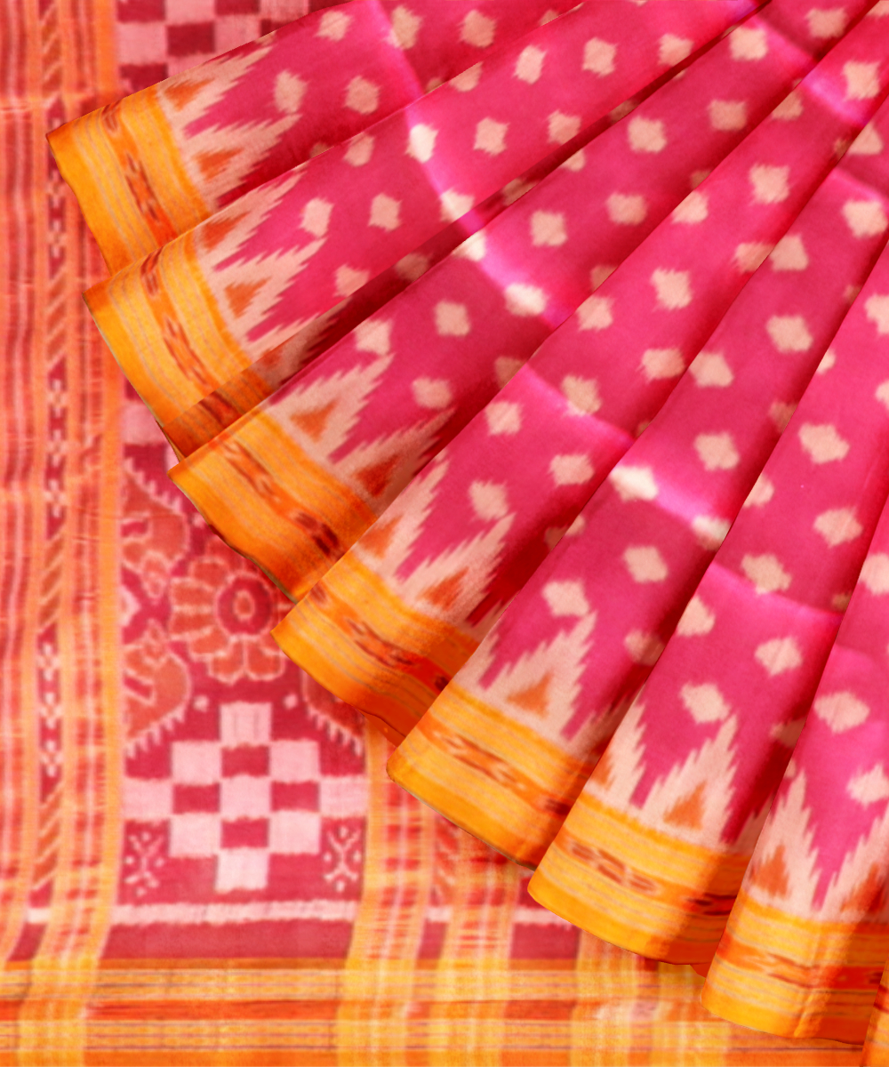 Pink orange silk handloom khandua saree