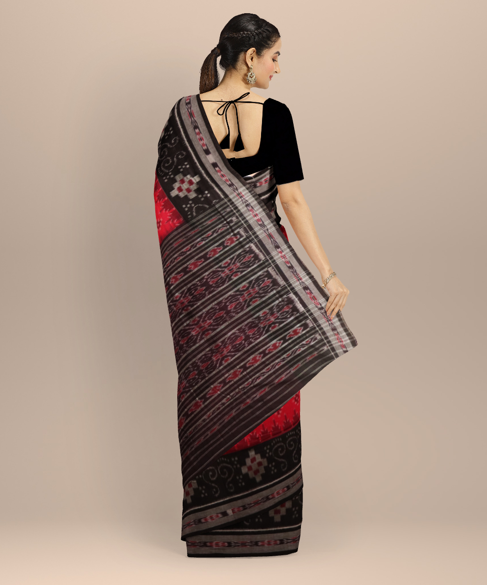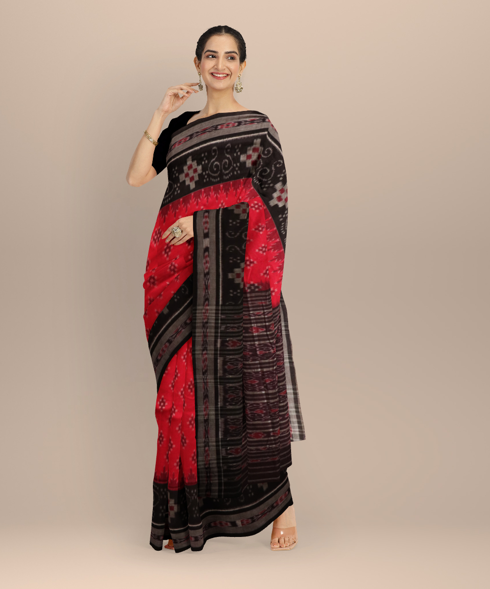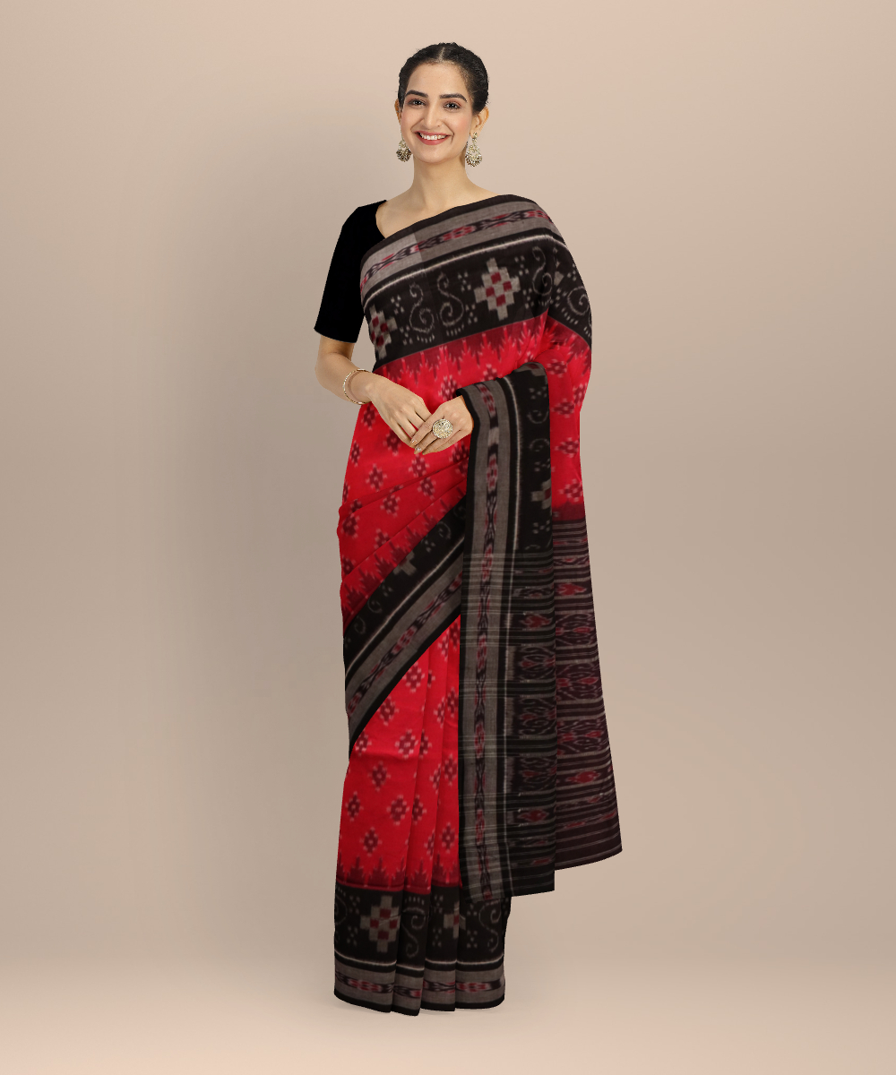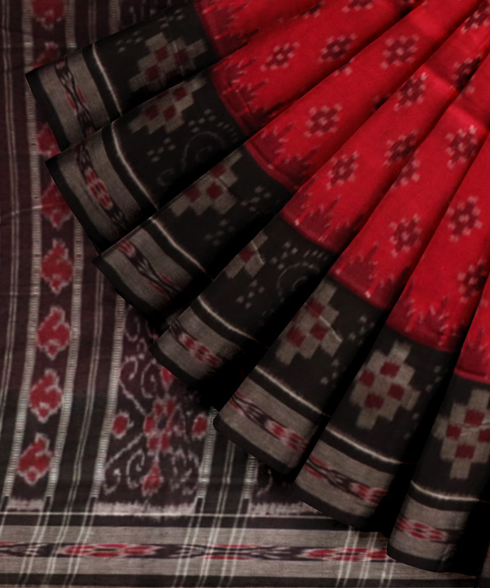 Red black cotton handloom nuapatna saree