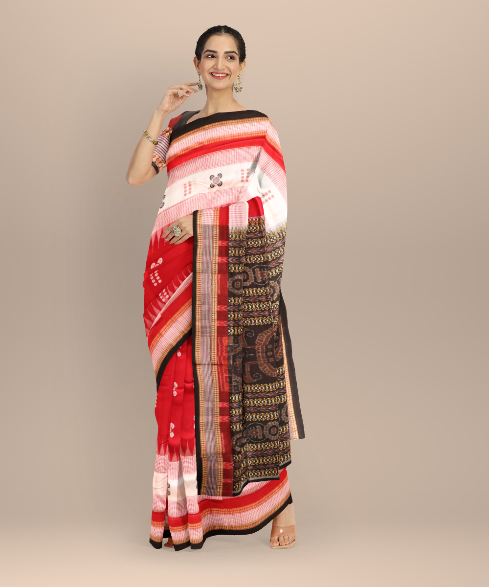 Be the first to review “Red black & white cotton handloom sonepur saree”
