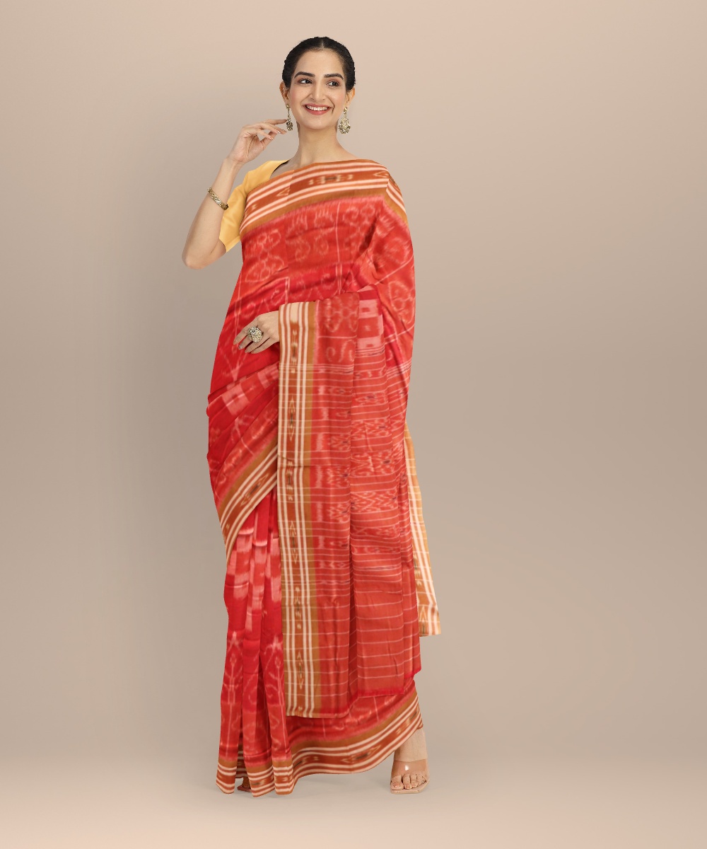 Red brown cotton handloom nuapatna saree