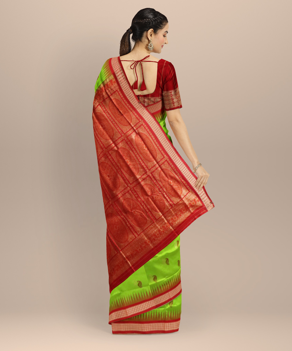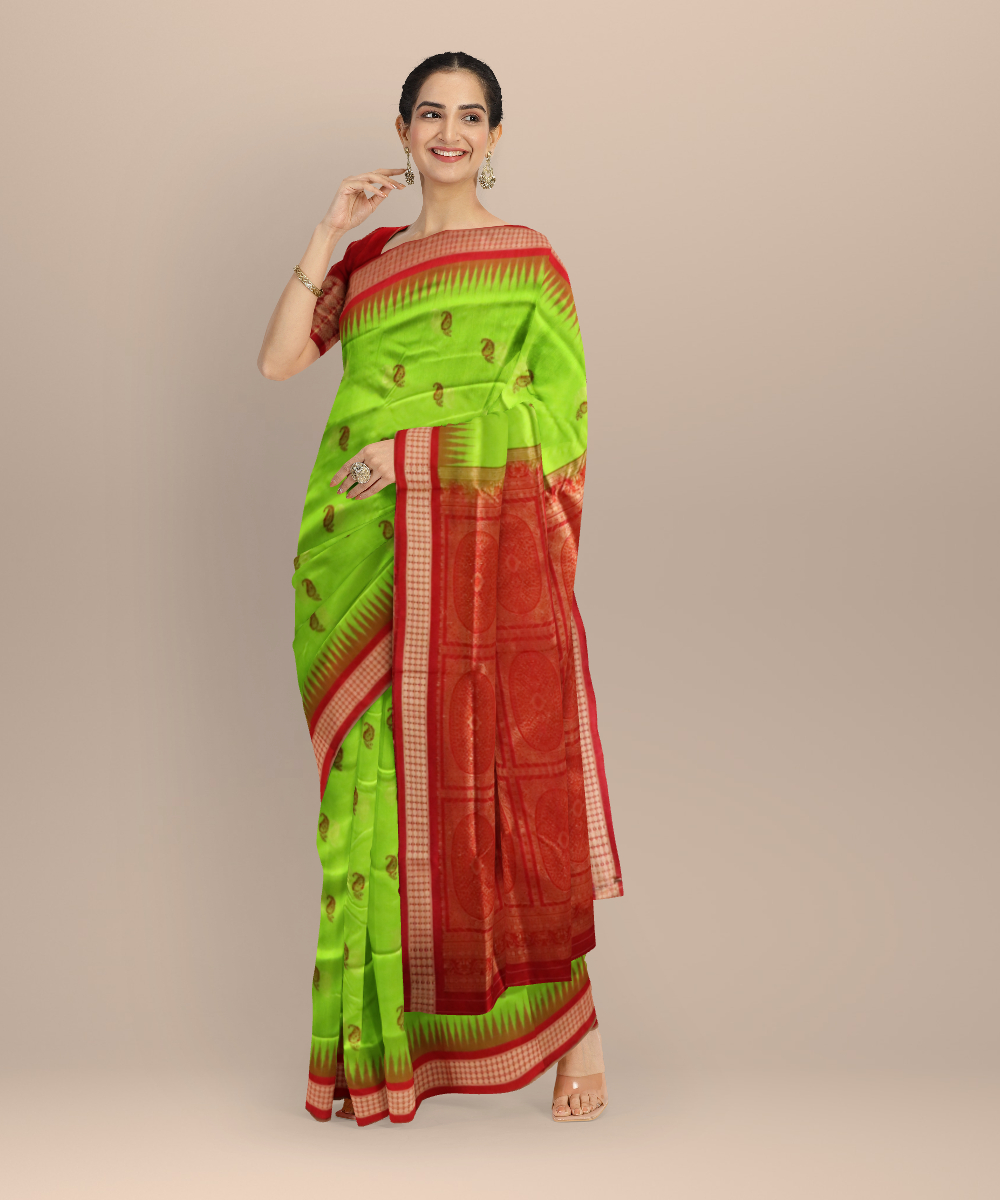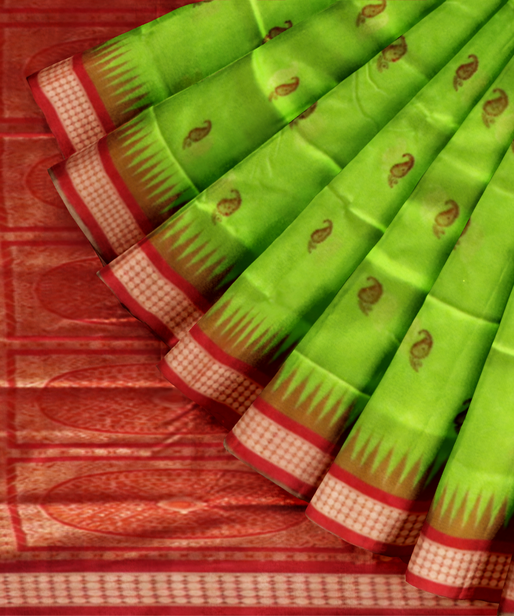 Teal green dark red silk handloom bomkai saree