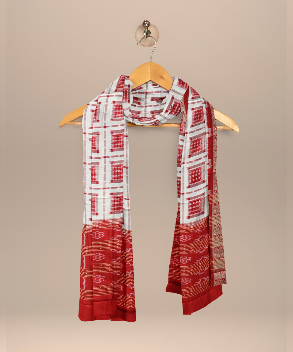 Be the first to review “White dark red silk handloom sambalpuri dupatta”