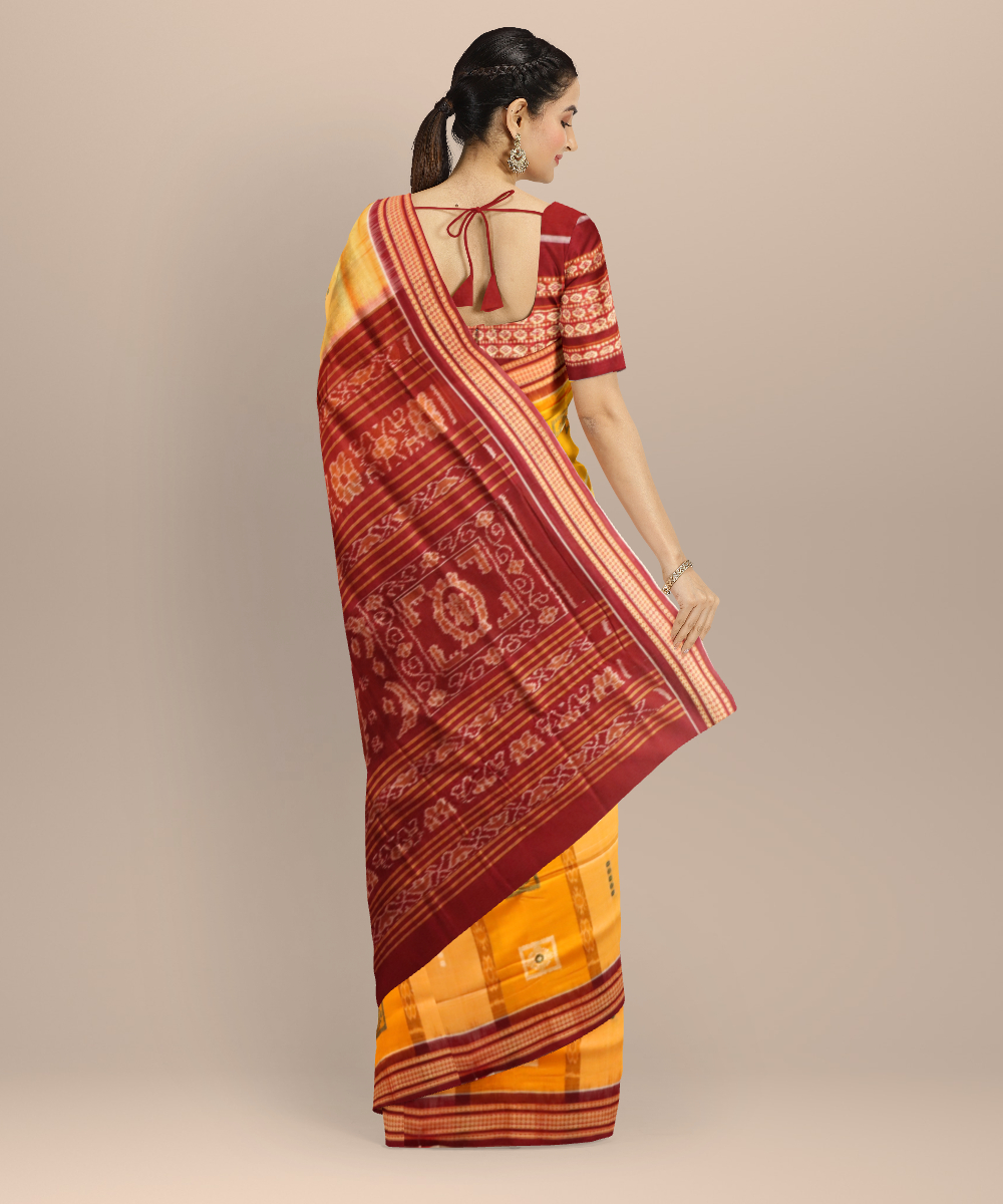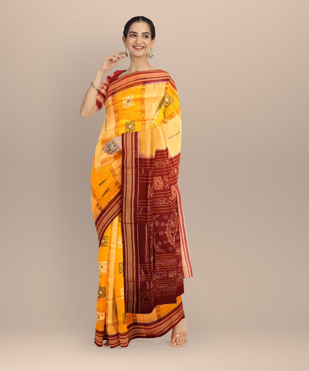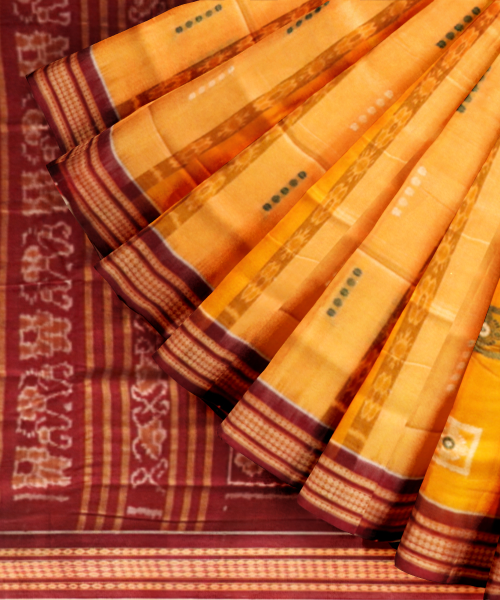 Yellow burgundy cotton handloom bomkai saree