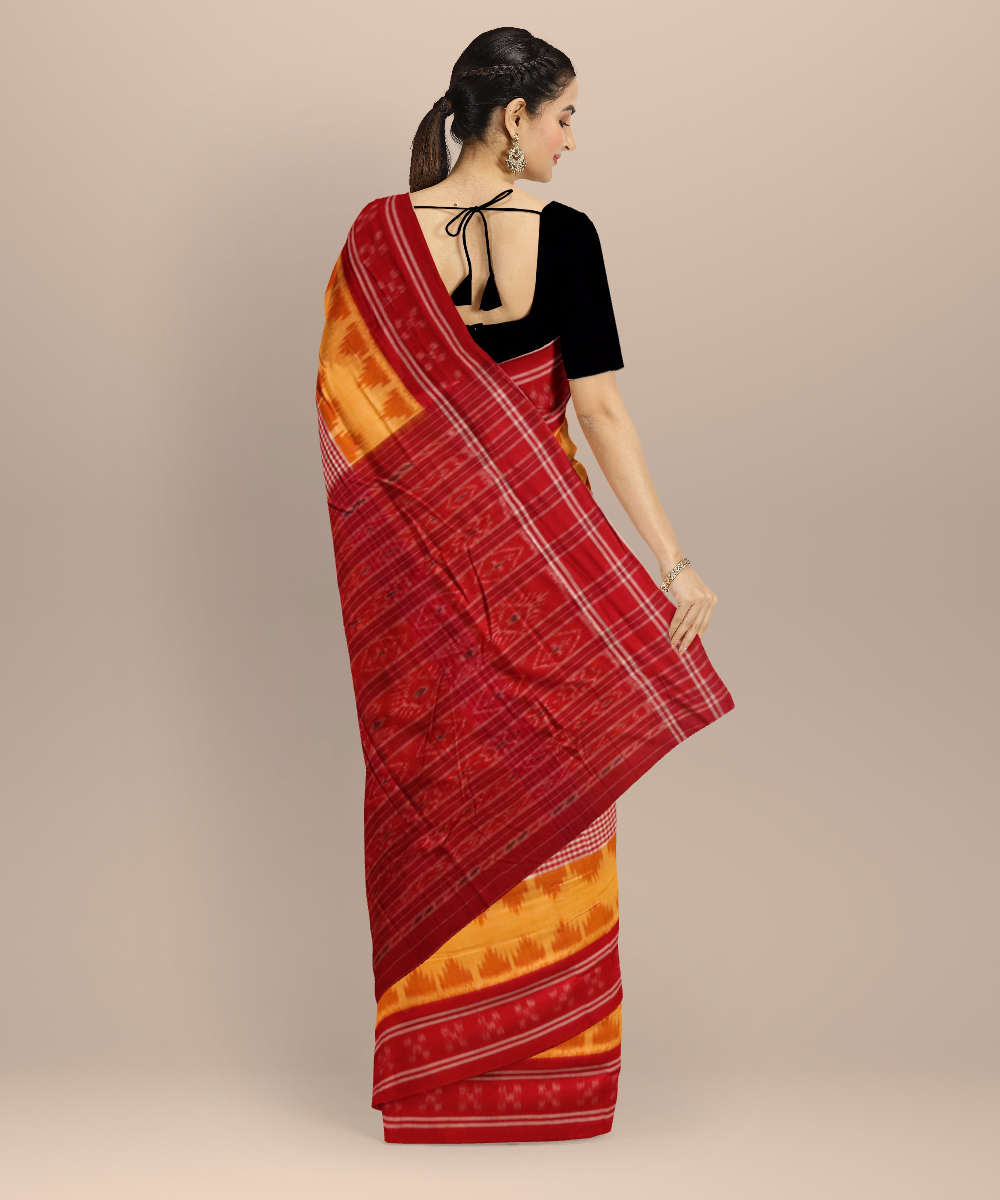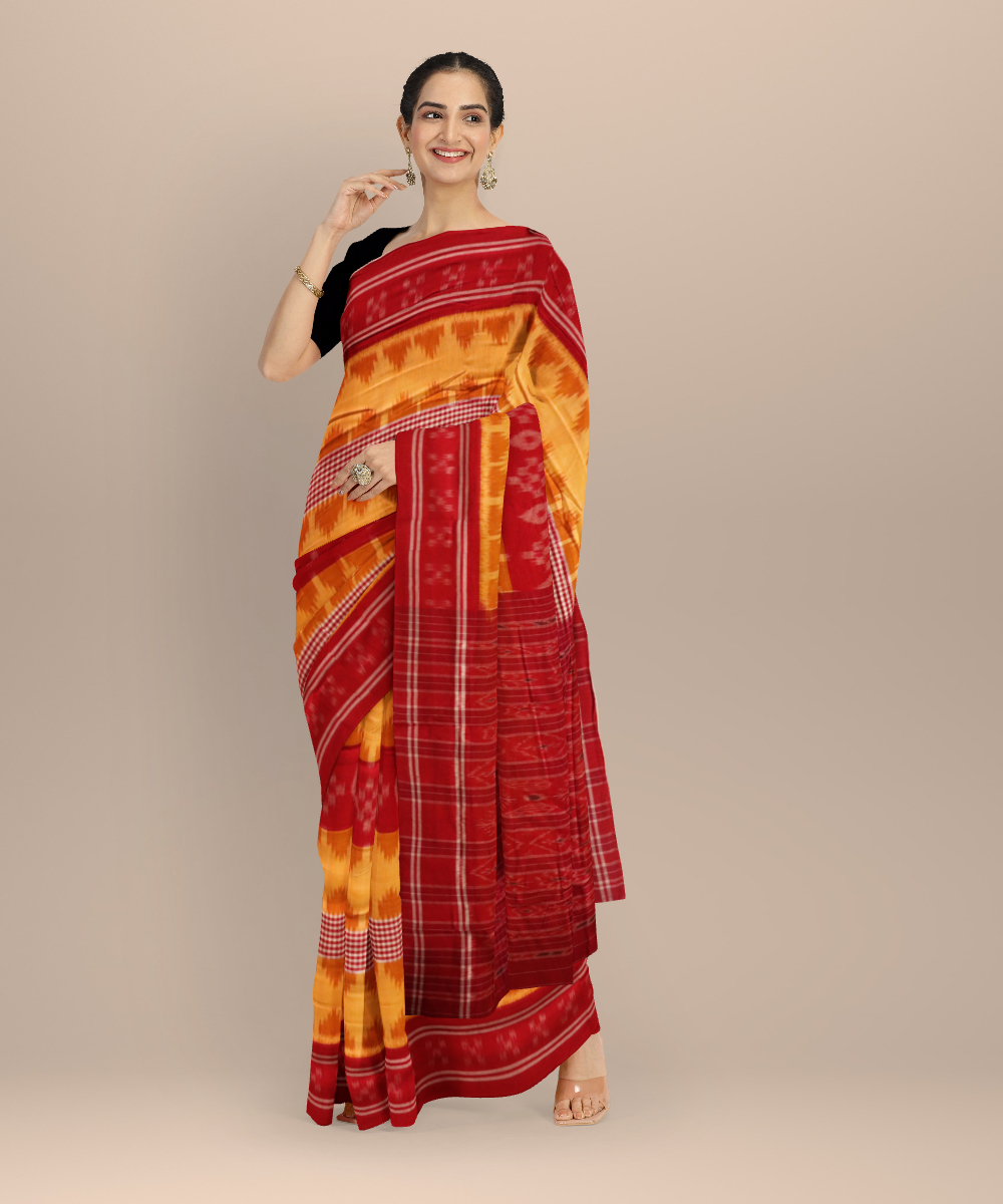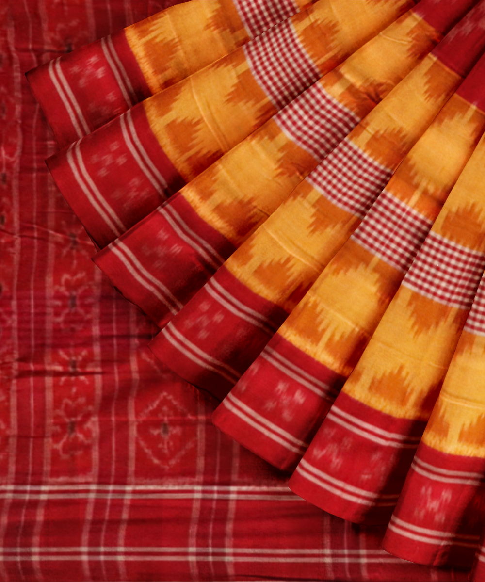 Yellow dark red cotton handloom nuapatna saree